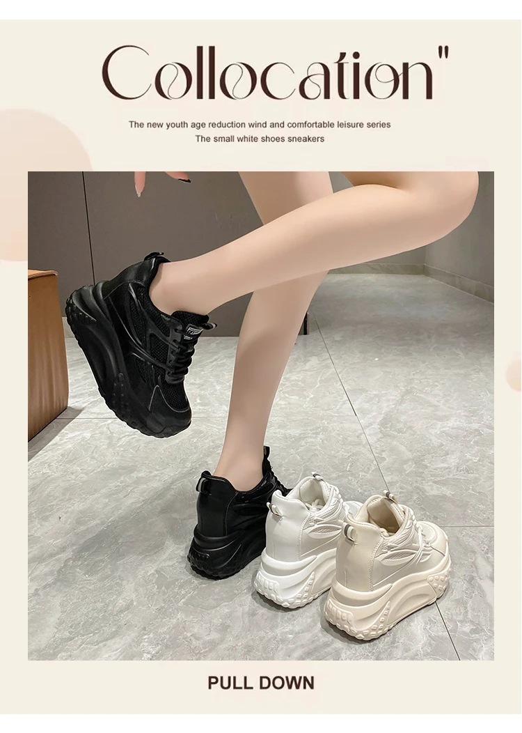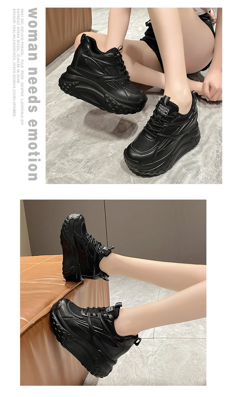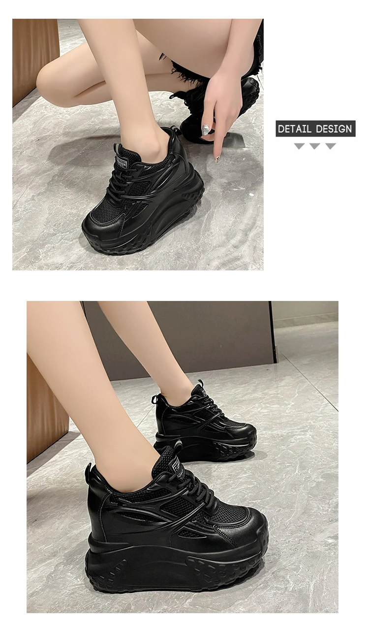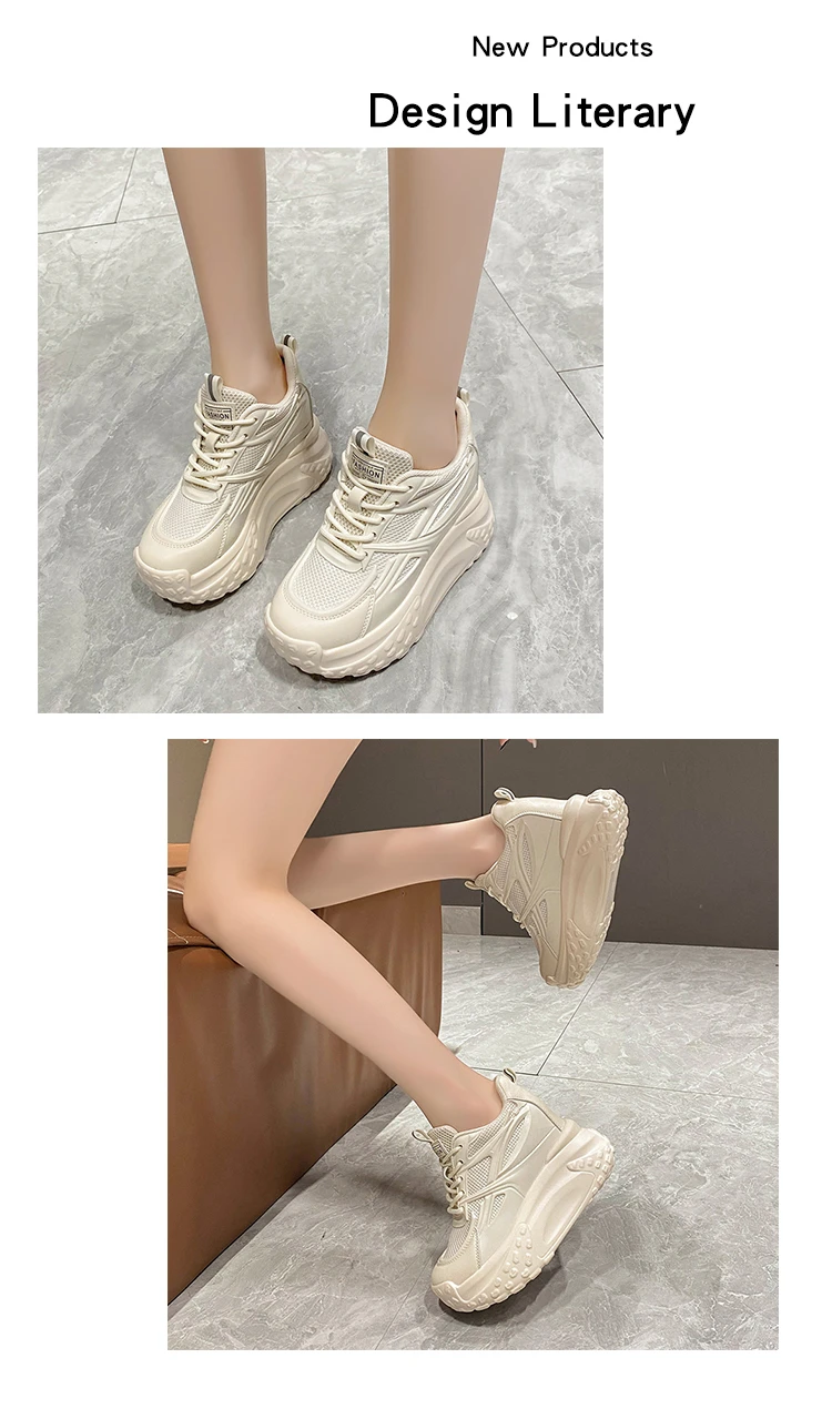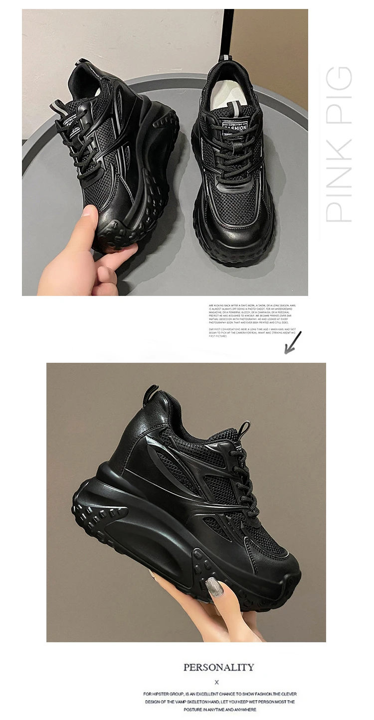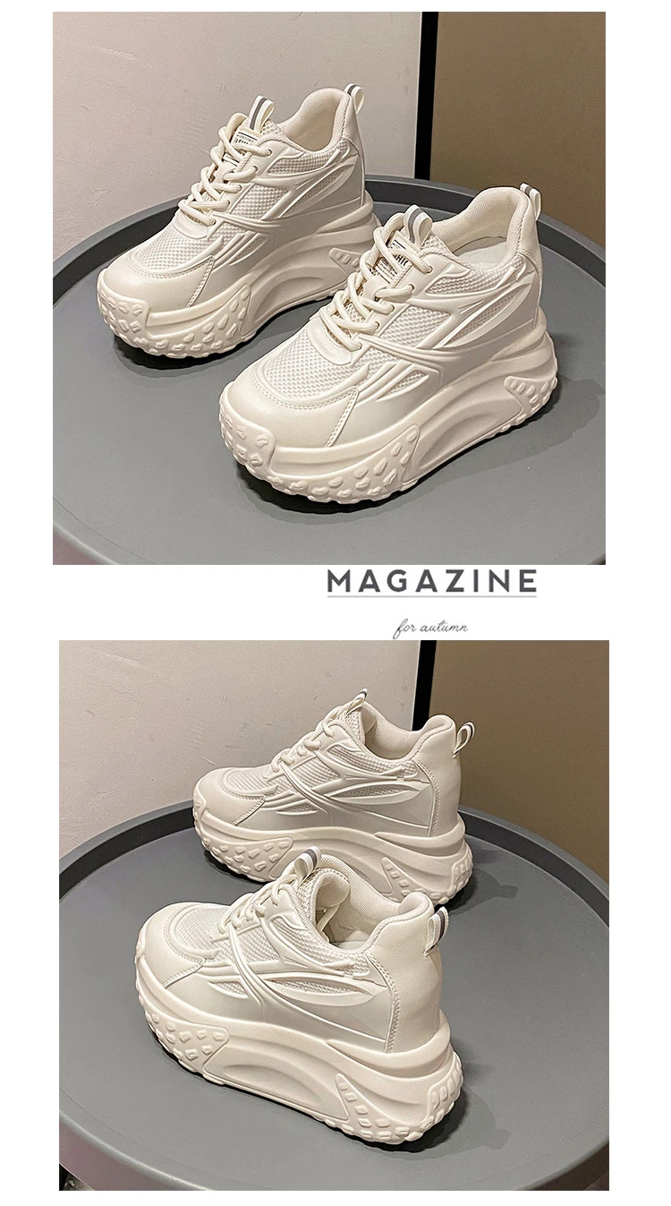 Hollow High Heels 10cm Sneakers Chunky Casual Autumn Spring Platform Wedge High Fashion Breathable Women Summer Shoes