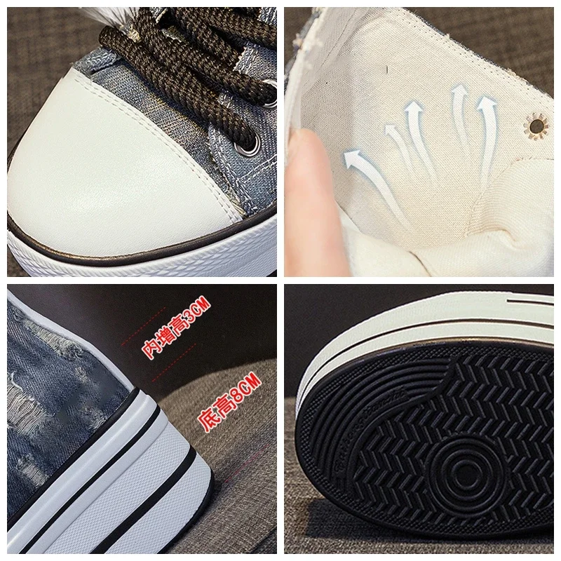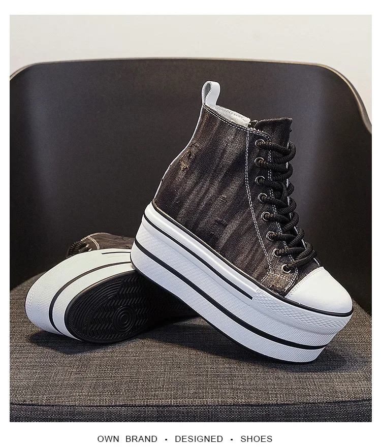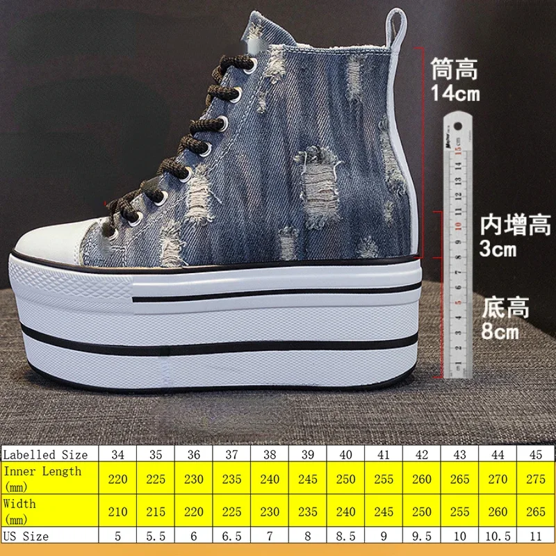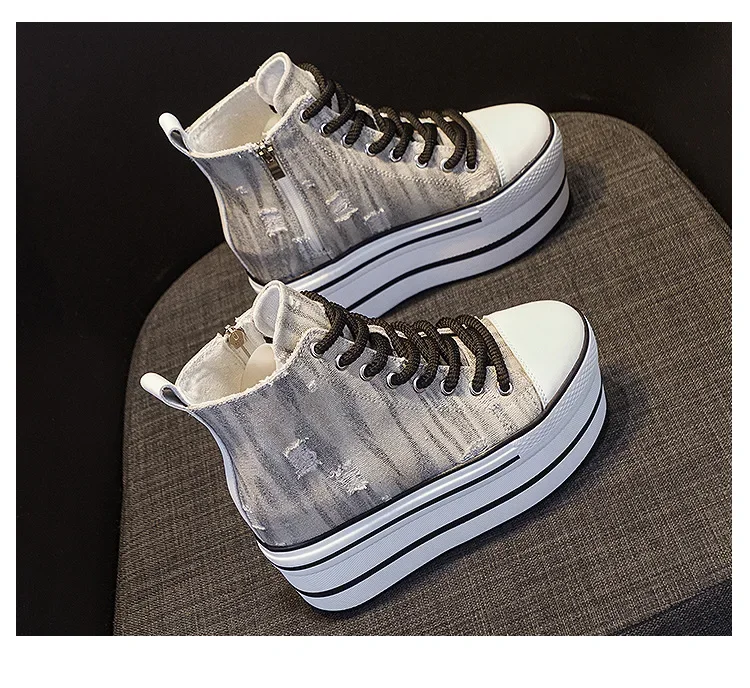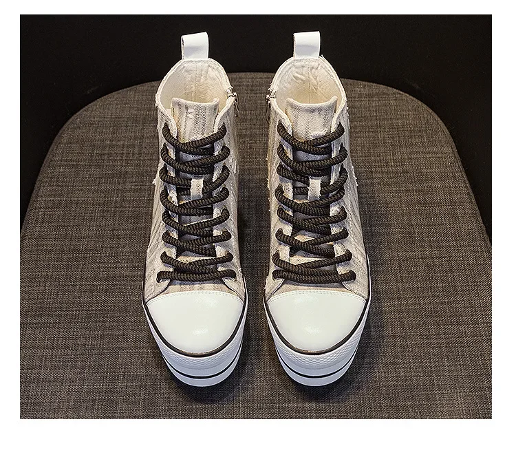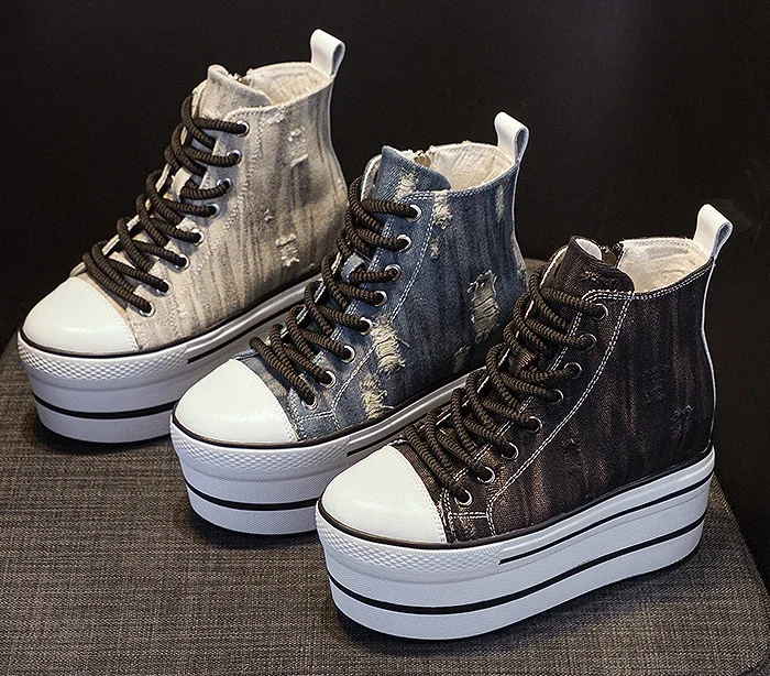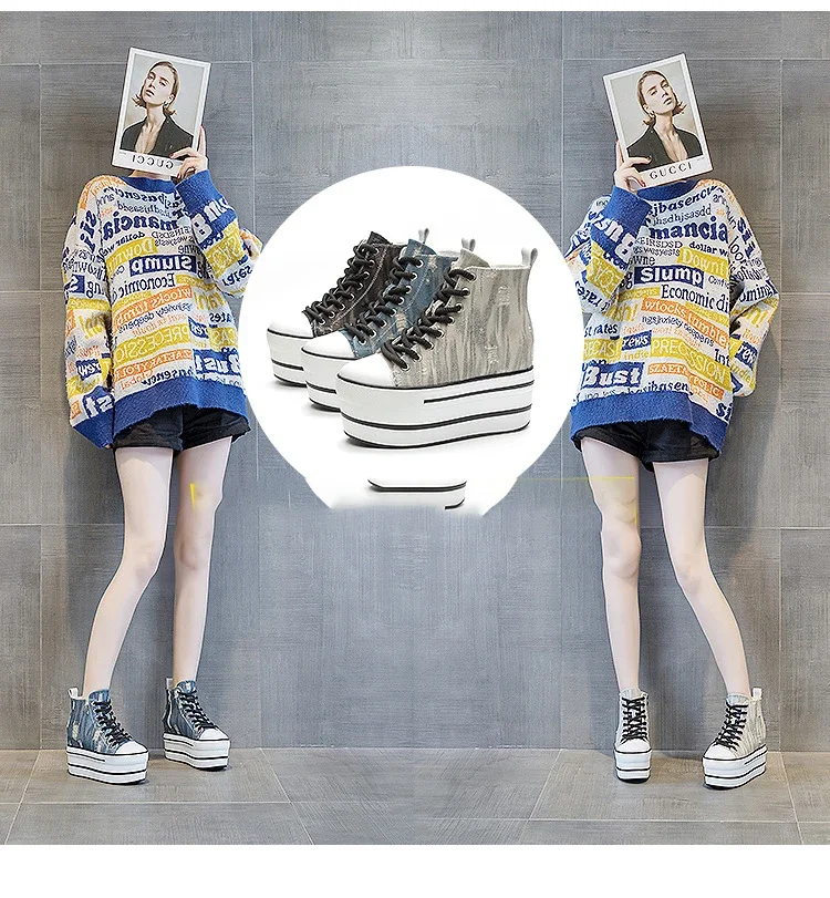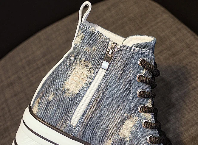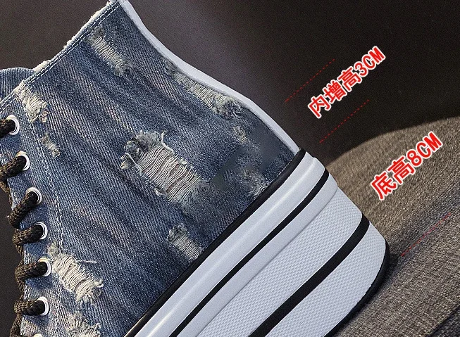 Hot sales 11CM Denim Genuine Leather Women 2024 Fashion Spring Ankle Boots Platform Wedge Autumn High Brand Hidden Heels Shoes
