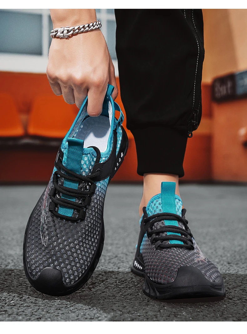 Injection molding summer new breathable mesh surface flying woven shoes sneakers for men -702