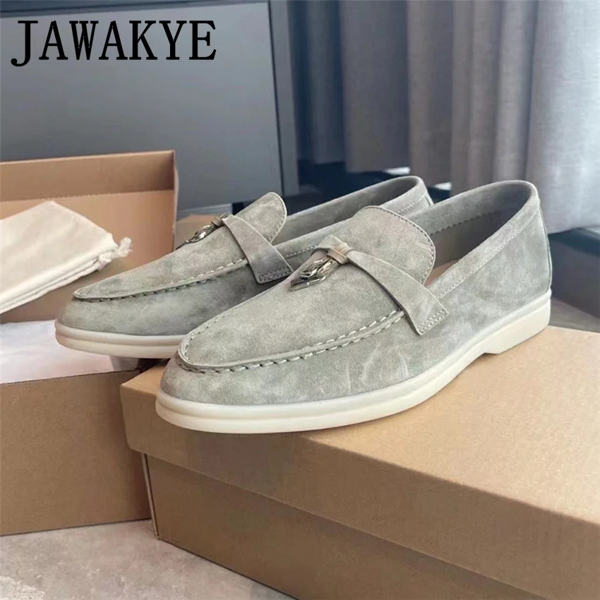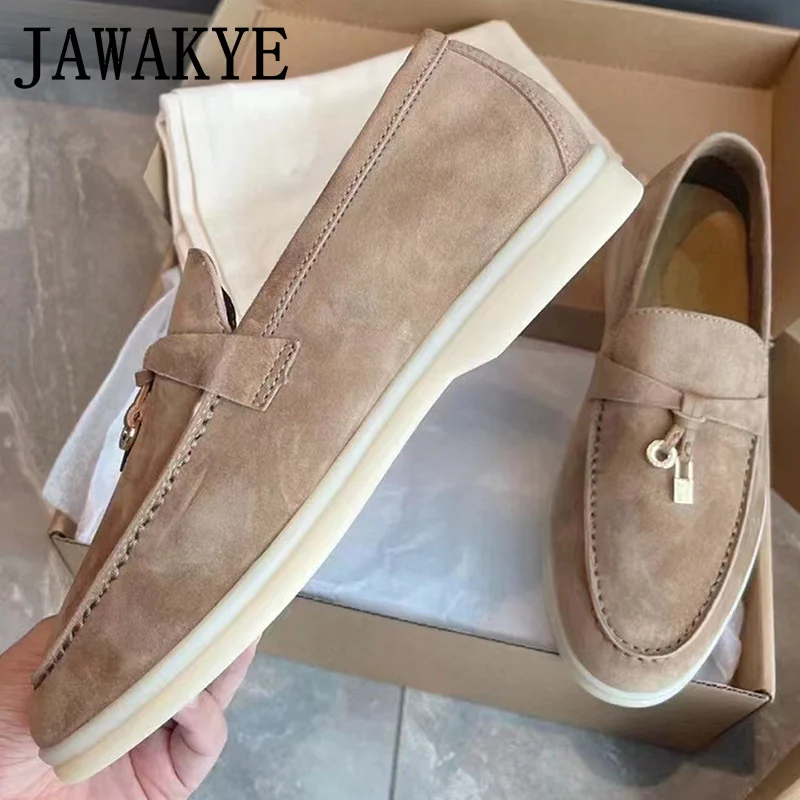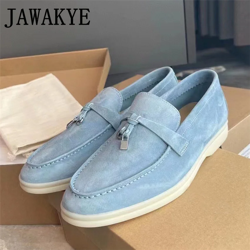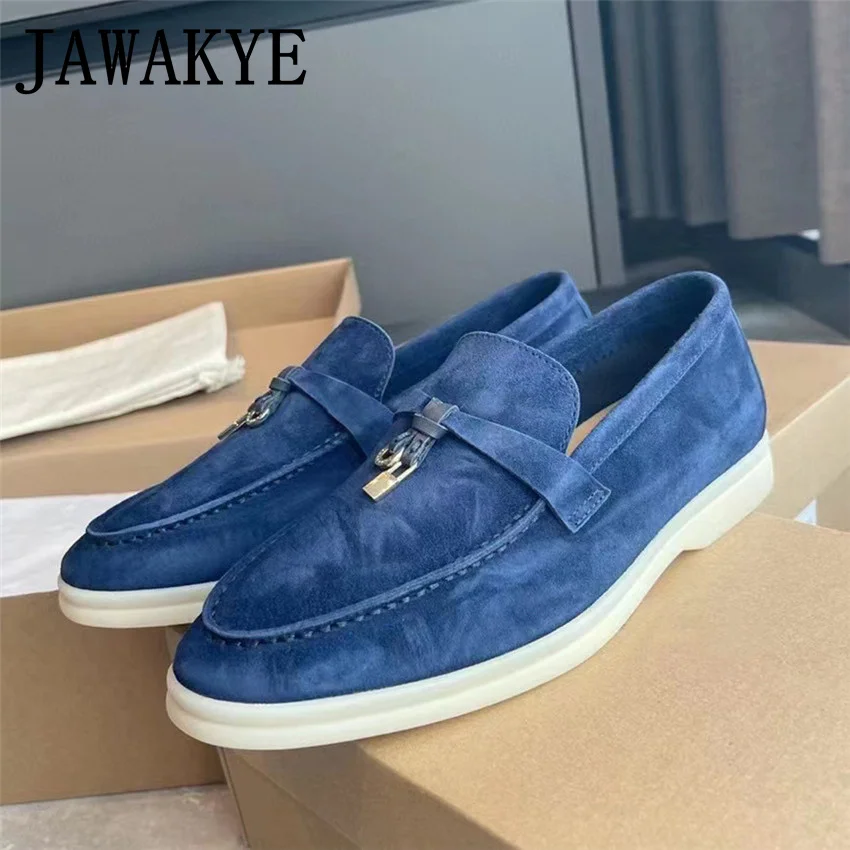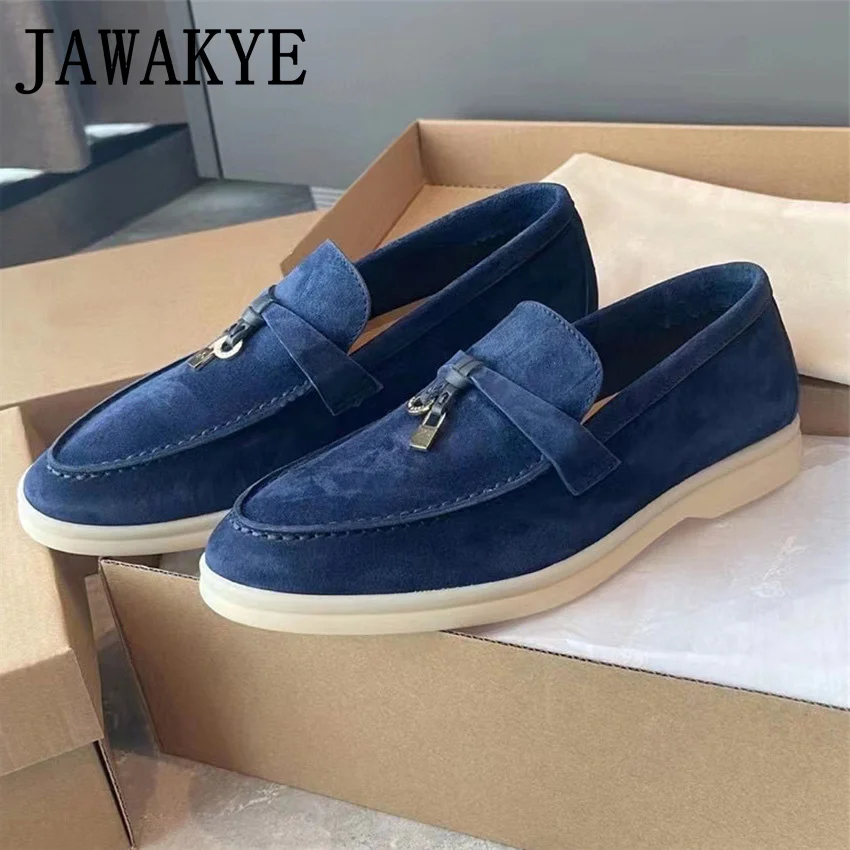 Kid Suede Men's Loafers Round Toe Slip-on Leisure Dress Mules Metal Lock Decor Outdoor Shoes New Arrival Men Flat Shoes Ballets