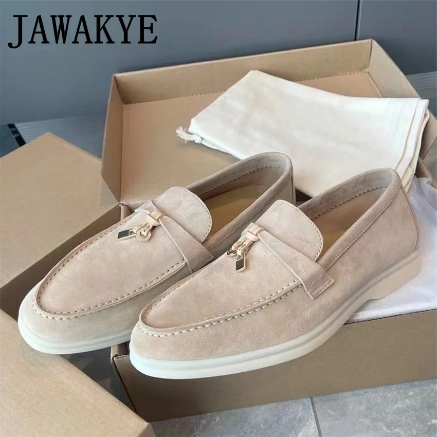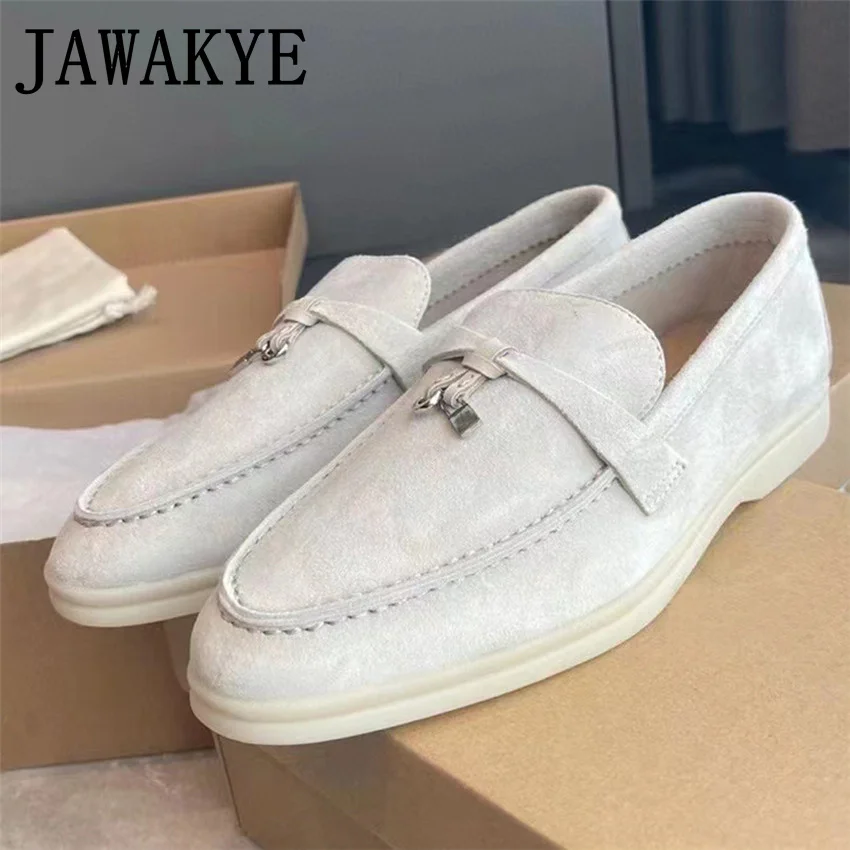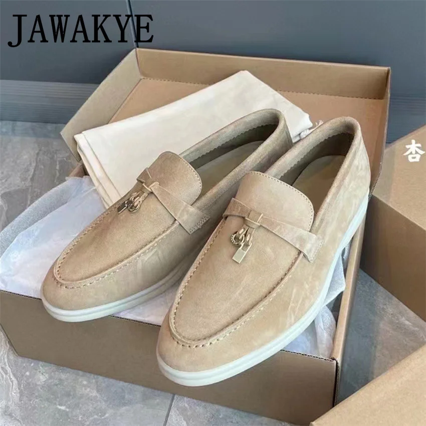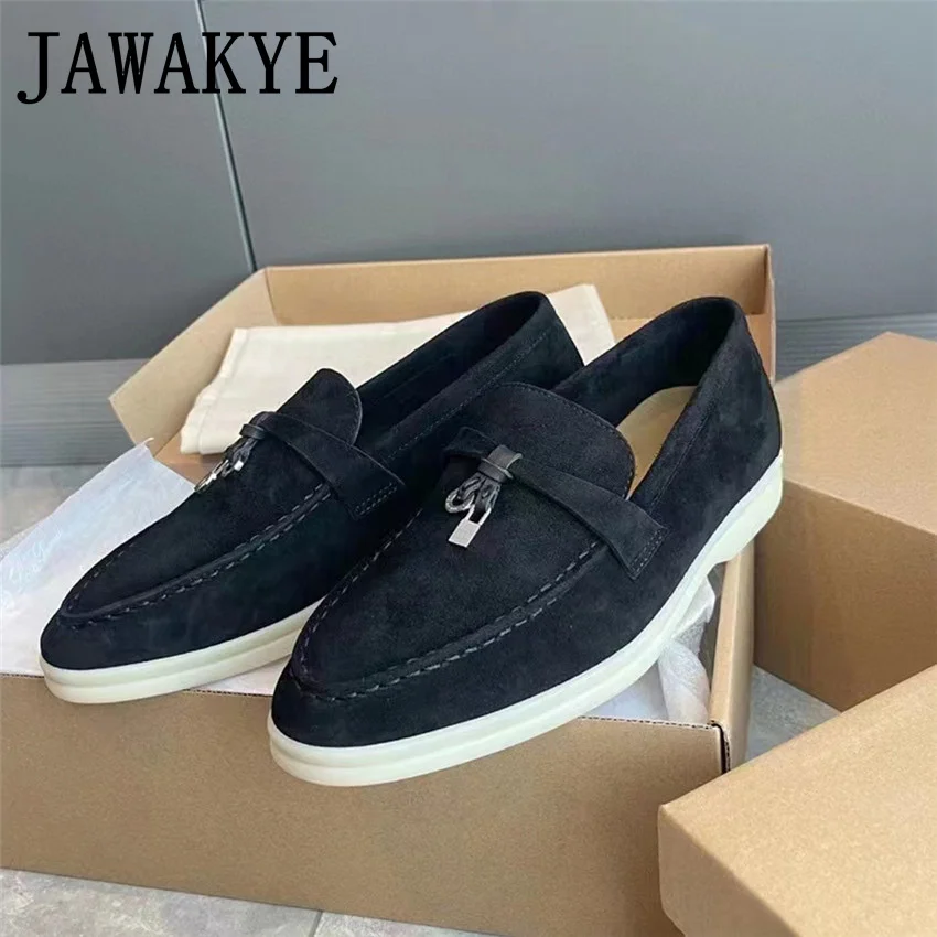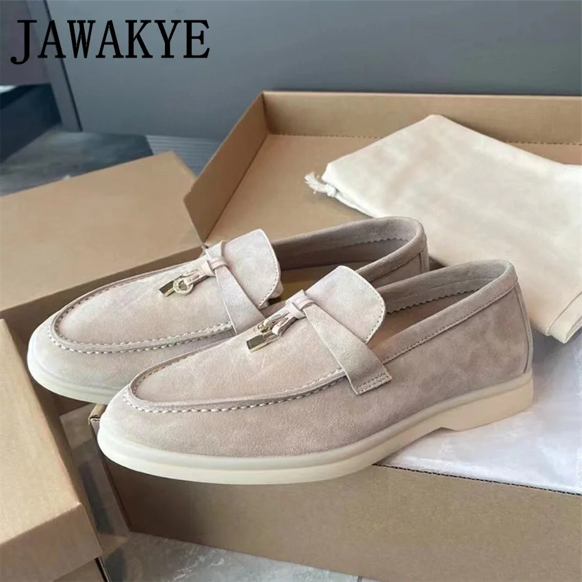 Kid Suede Men's Loafers Round Toe Slip-on Leisure Dress Mules Metal Lock Decor Outdoor Shoes New Arrival Men Flat Shoes Ballets