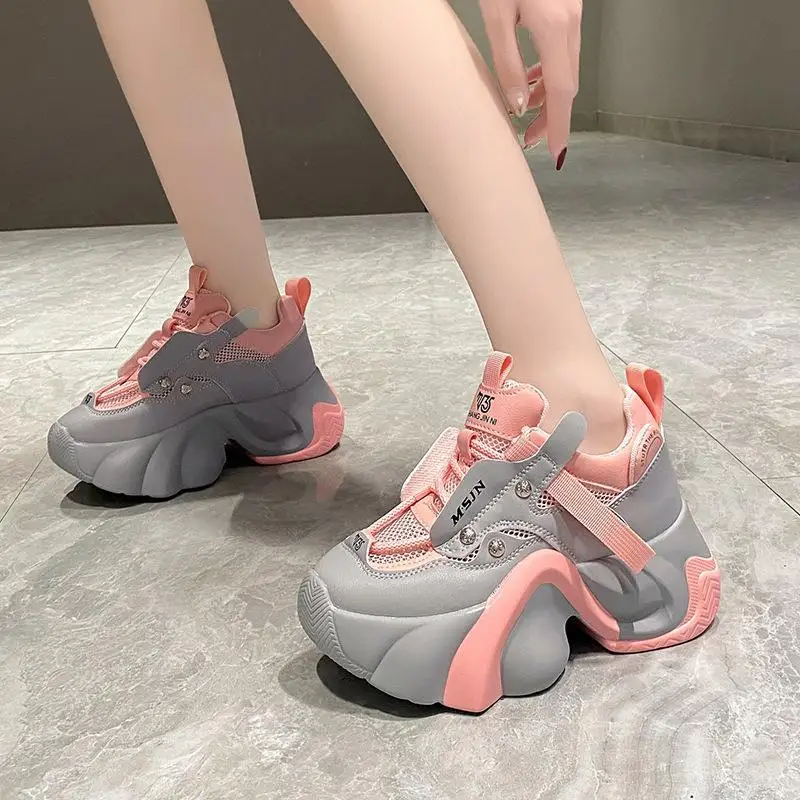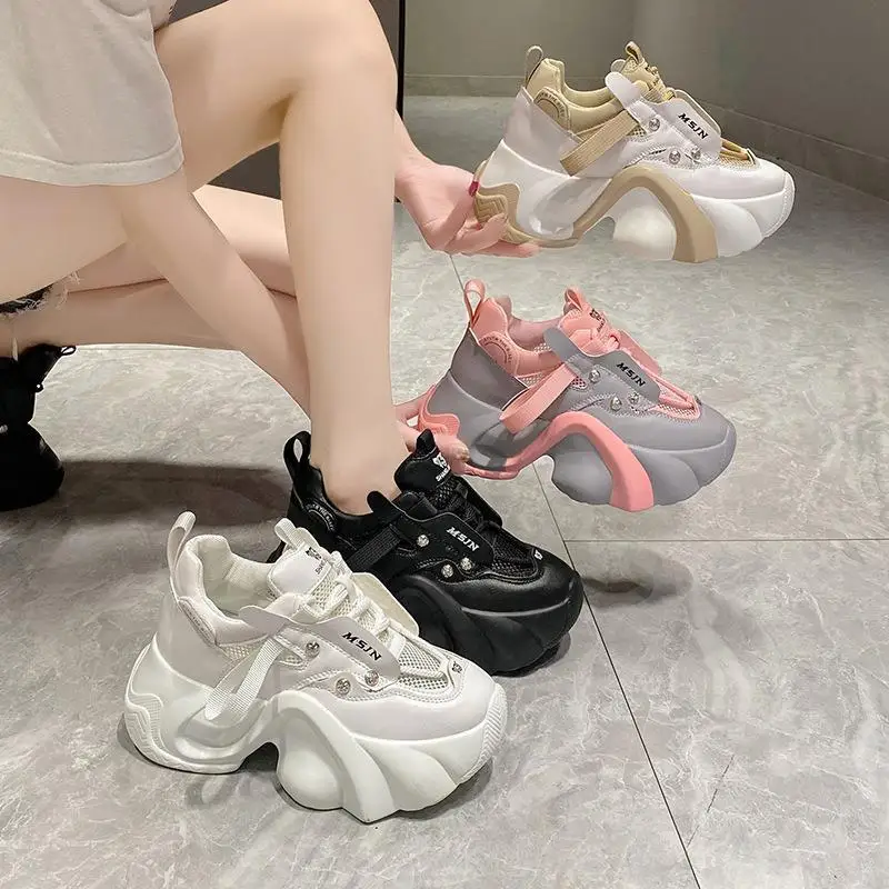 Korean Version Elevated Increase Sneakers Women Mesh Breathable 2023 New Fashion Casual Simple All-match Women Shoes Autumntime