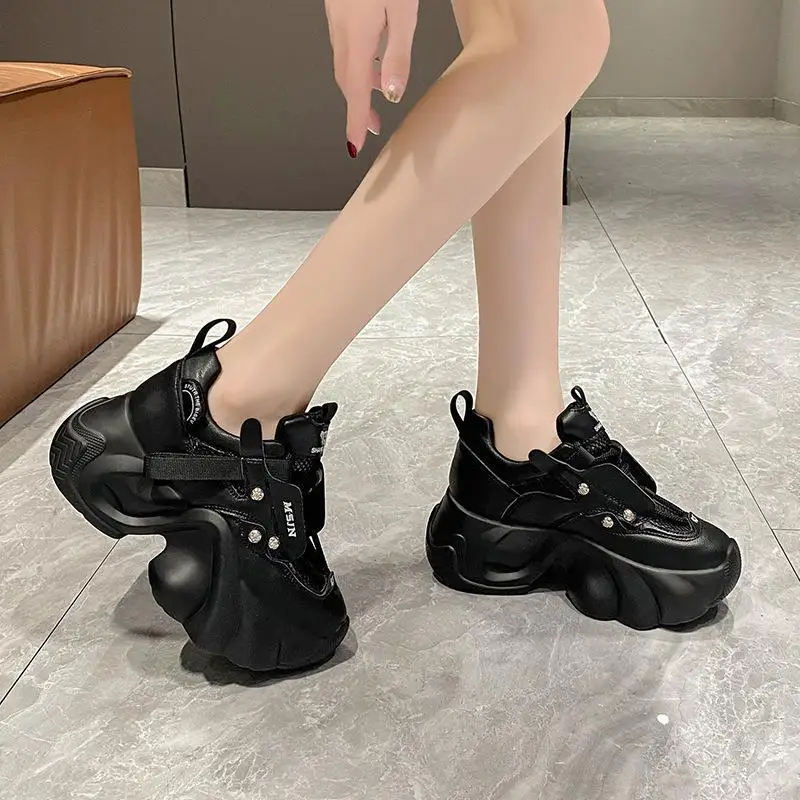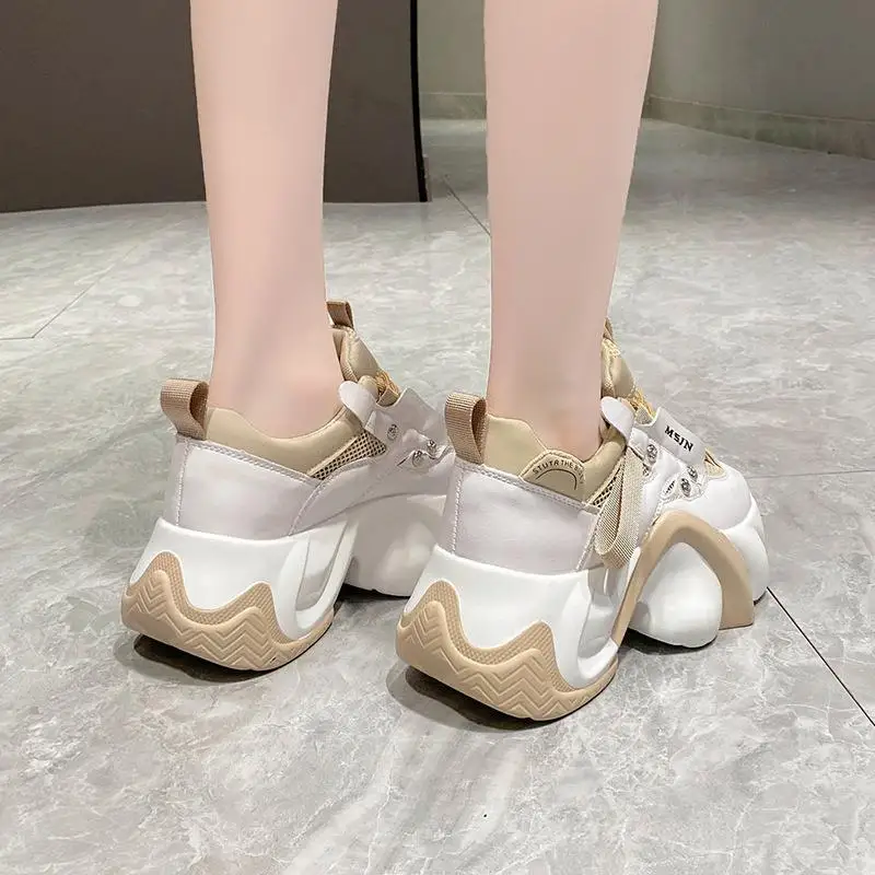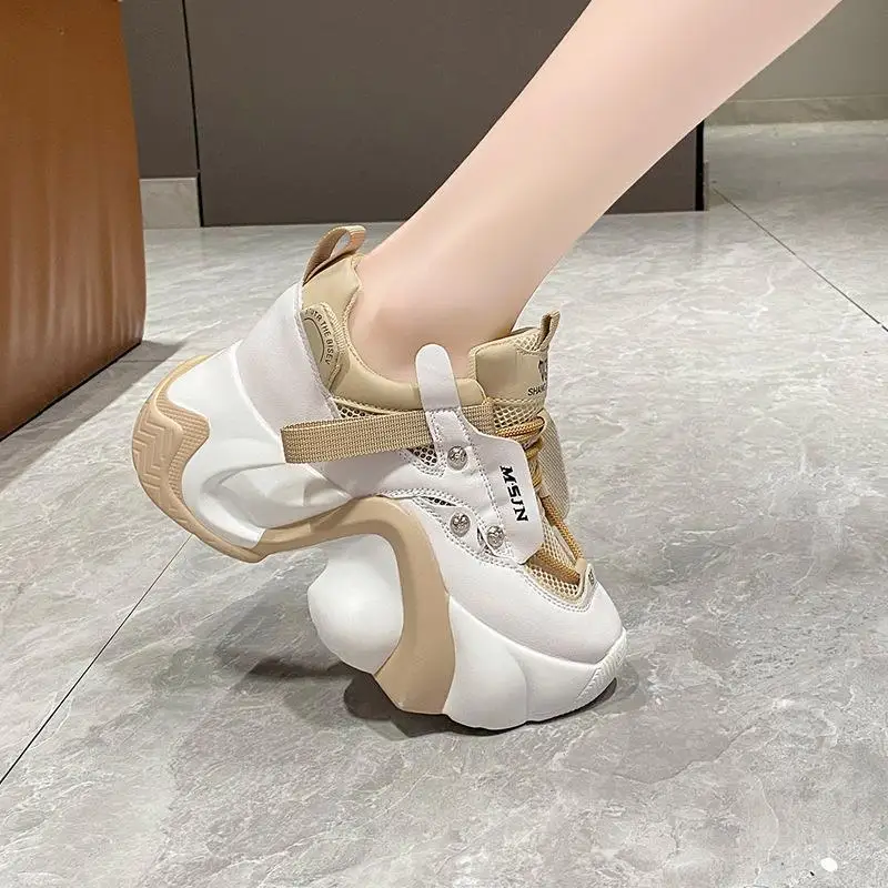 Korean Version Elevated Increase Sneakers Women Mesh Breathable 2023 New Fashion Casual Simple All-match Women Shoes Autumntime