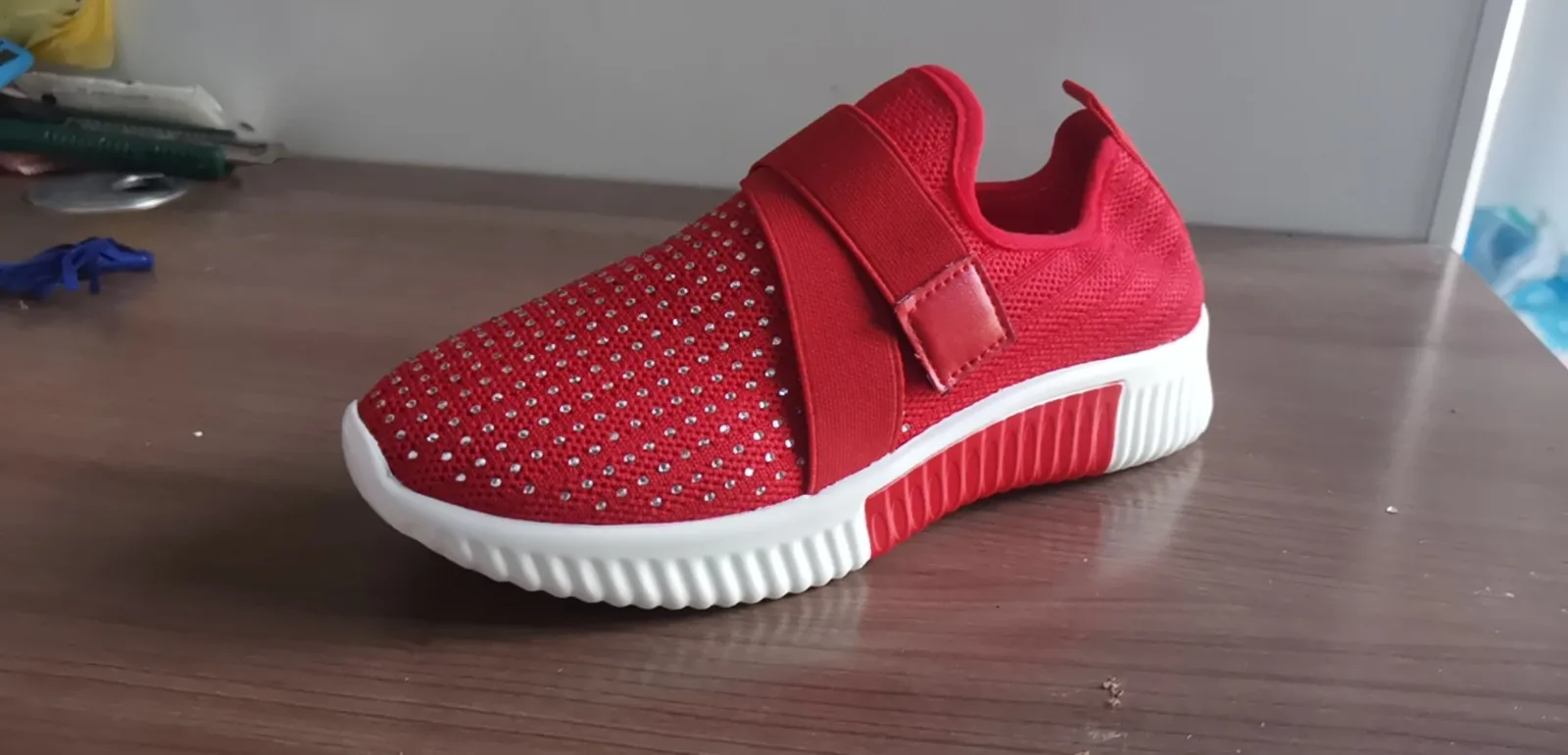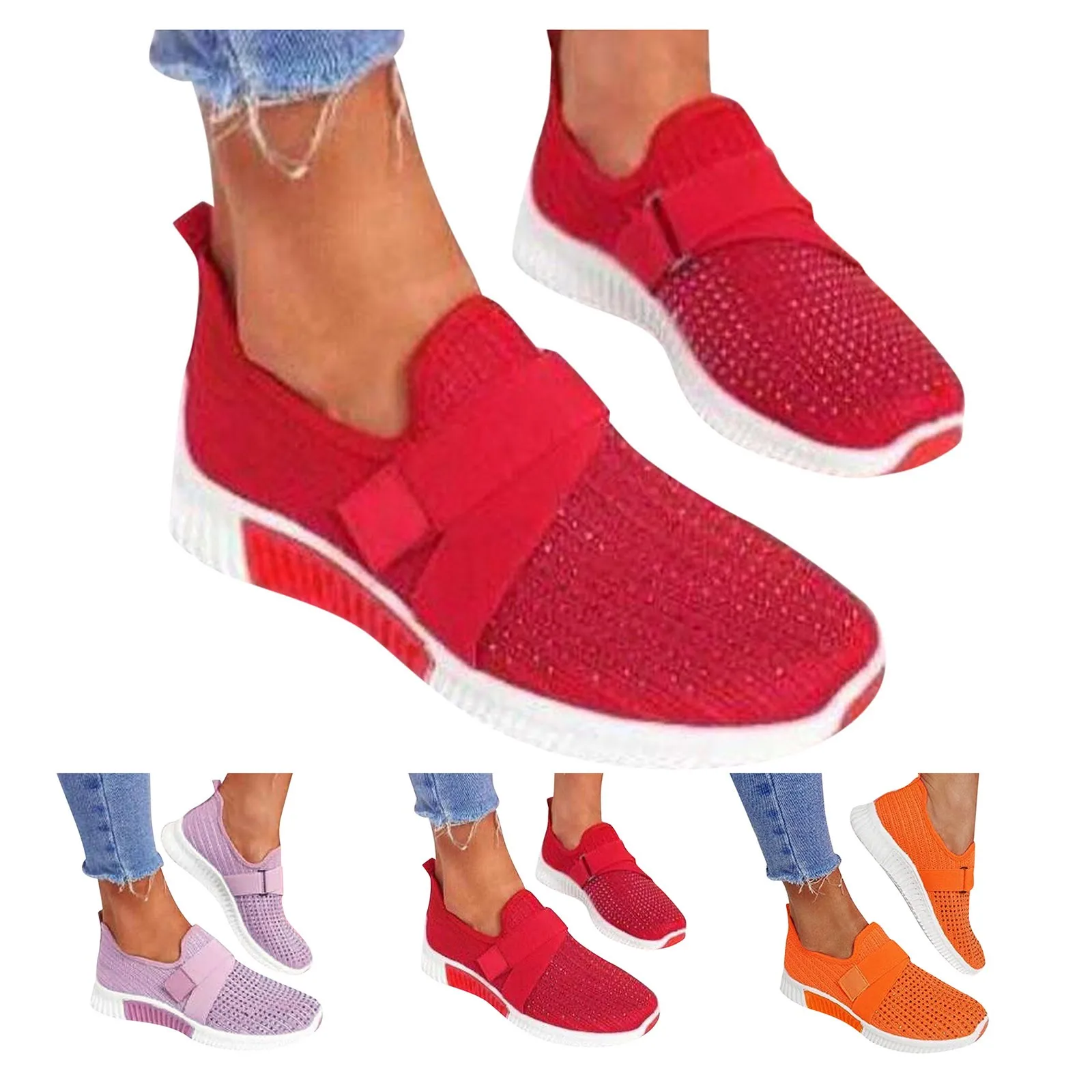Ladies Casual Shoes 2024 Summer Fly Weave Rhinestone Flats Shoes Running Walking Mesh Breathable Slip On Flats Women Shoes