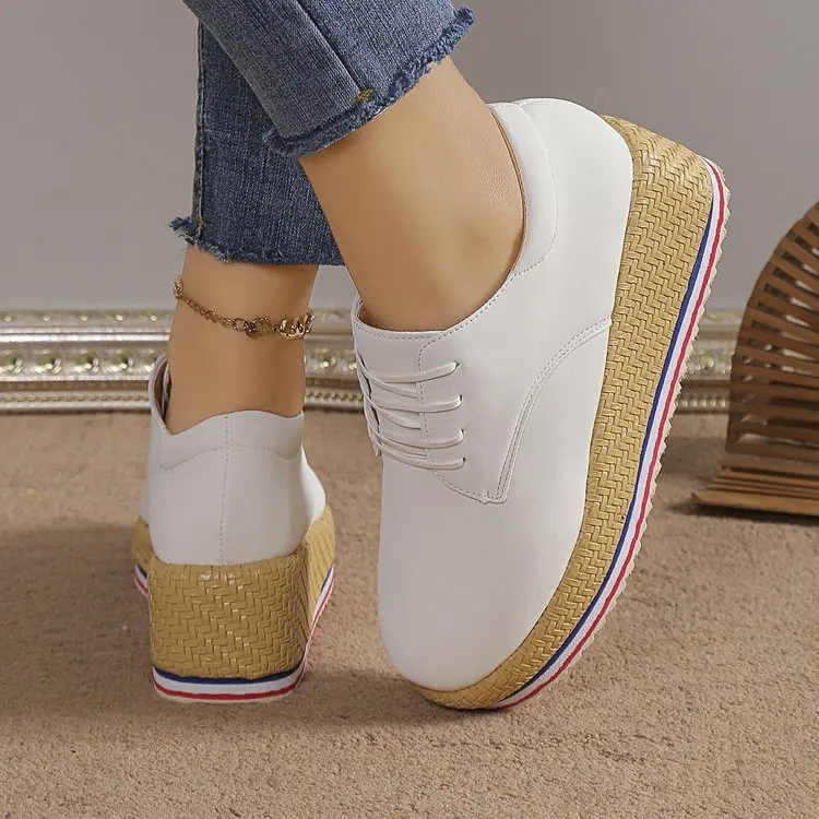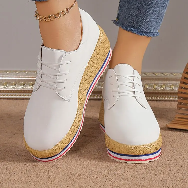 Large Size Women Hiking Shoes 2024 Spring New Flat Heel Sneakers Thick Bottom Lacing Single Shoes Female Women Sneakers Size 42