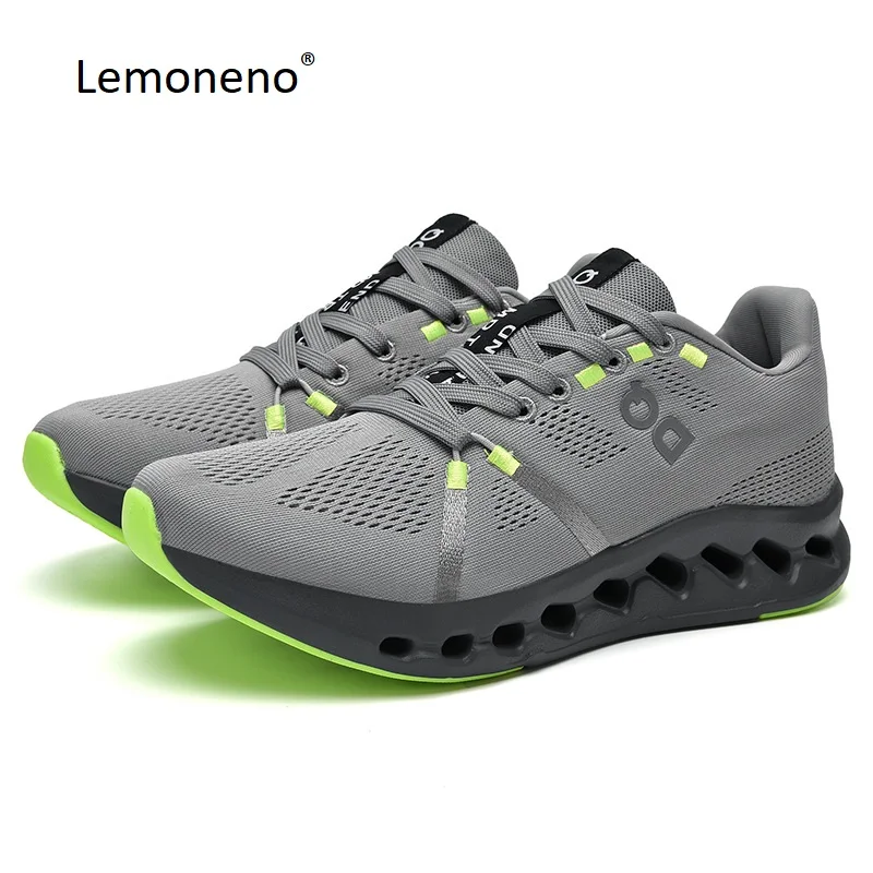 Lemoneno 2024 Running Shoes Sport Train Shoes,Casual Sneakers Lace Up Non-slip Comfort Footwear for Travel Marathon Green Grey