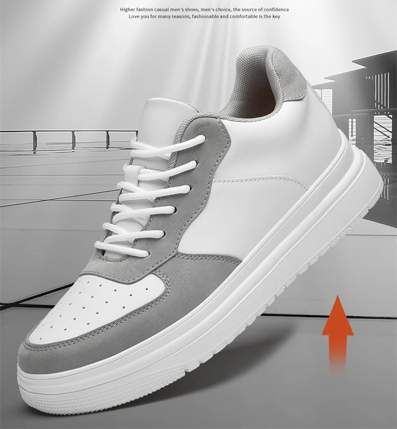 Lift Sneakers Man Elevator Shoes Height Increase Insole 8cm White Taller Shoes Men Leisure Fashion Comfortable Breathable Sports