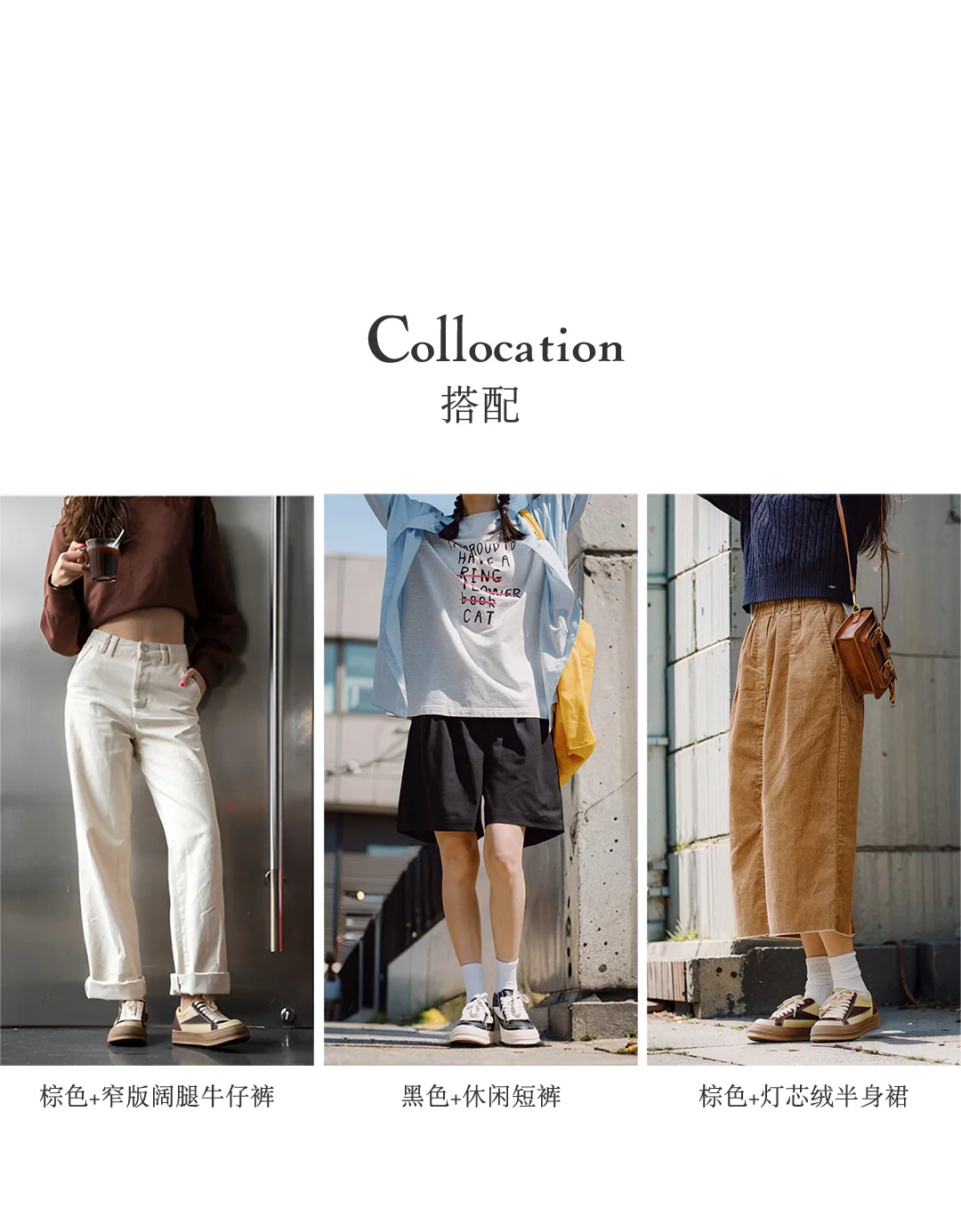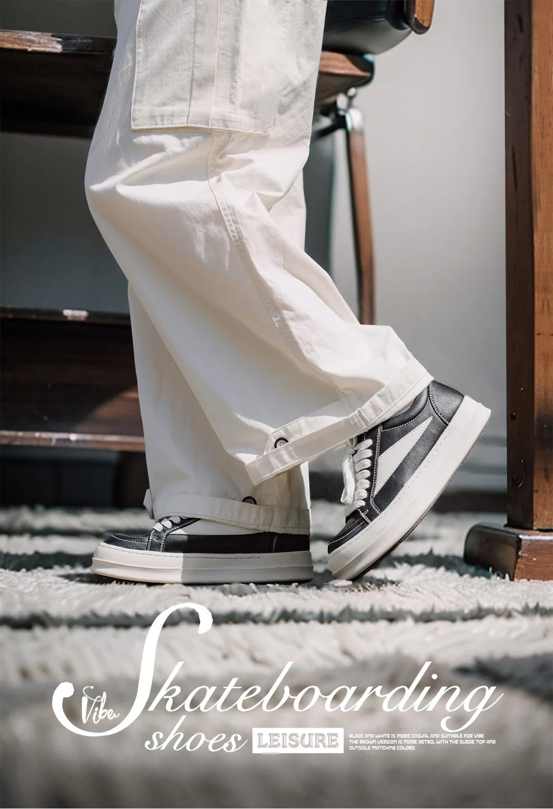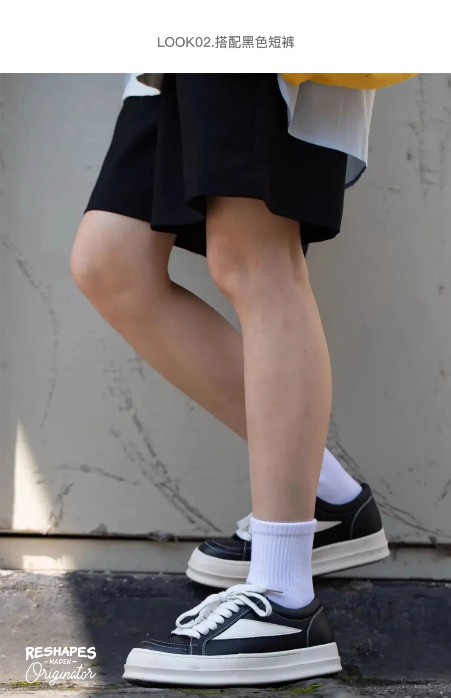 Maden Simple Versatile Thick Bottom Casual Shoes for Women Comfortable Sneakers Black and White Color Blocking Unisex Shoes