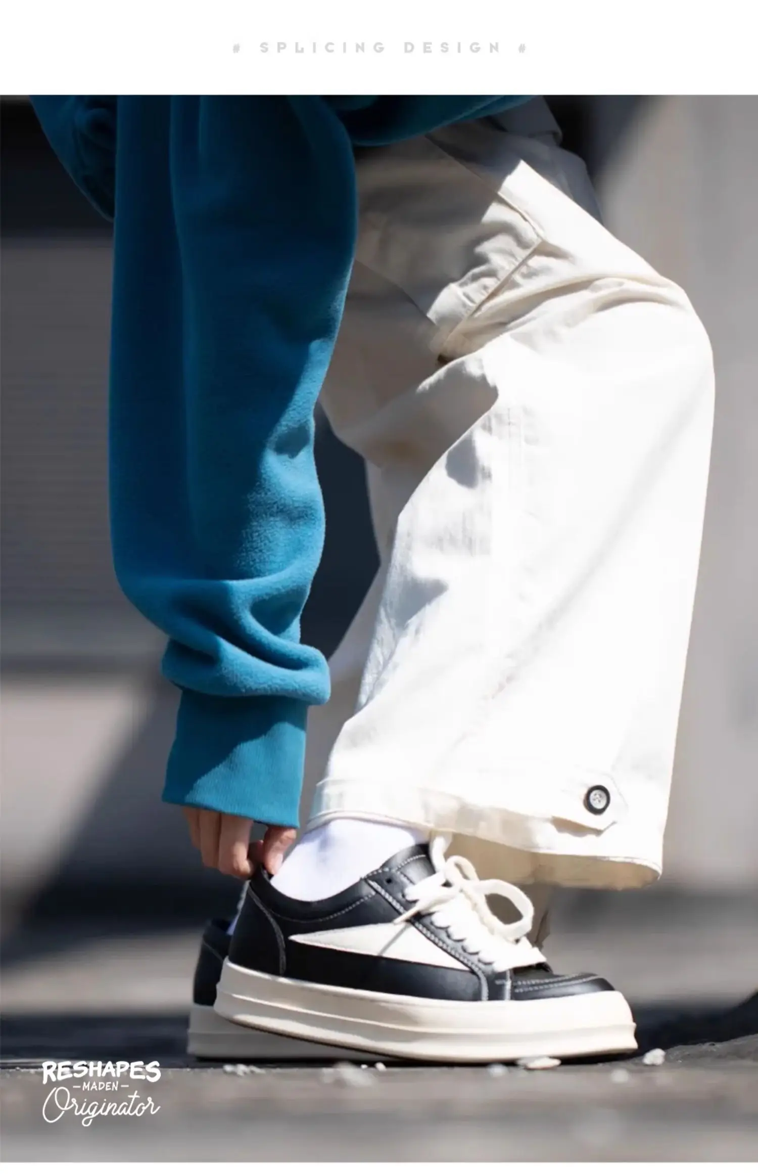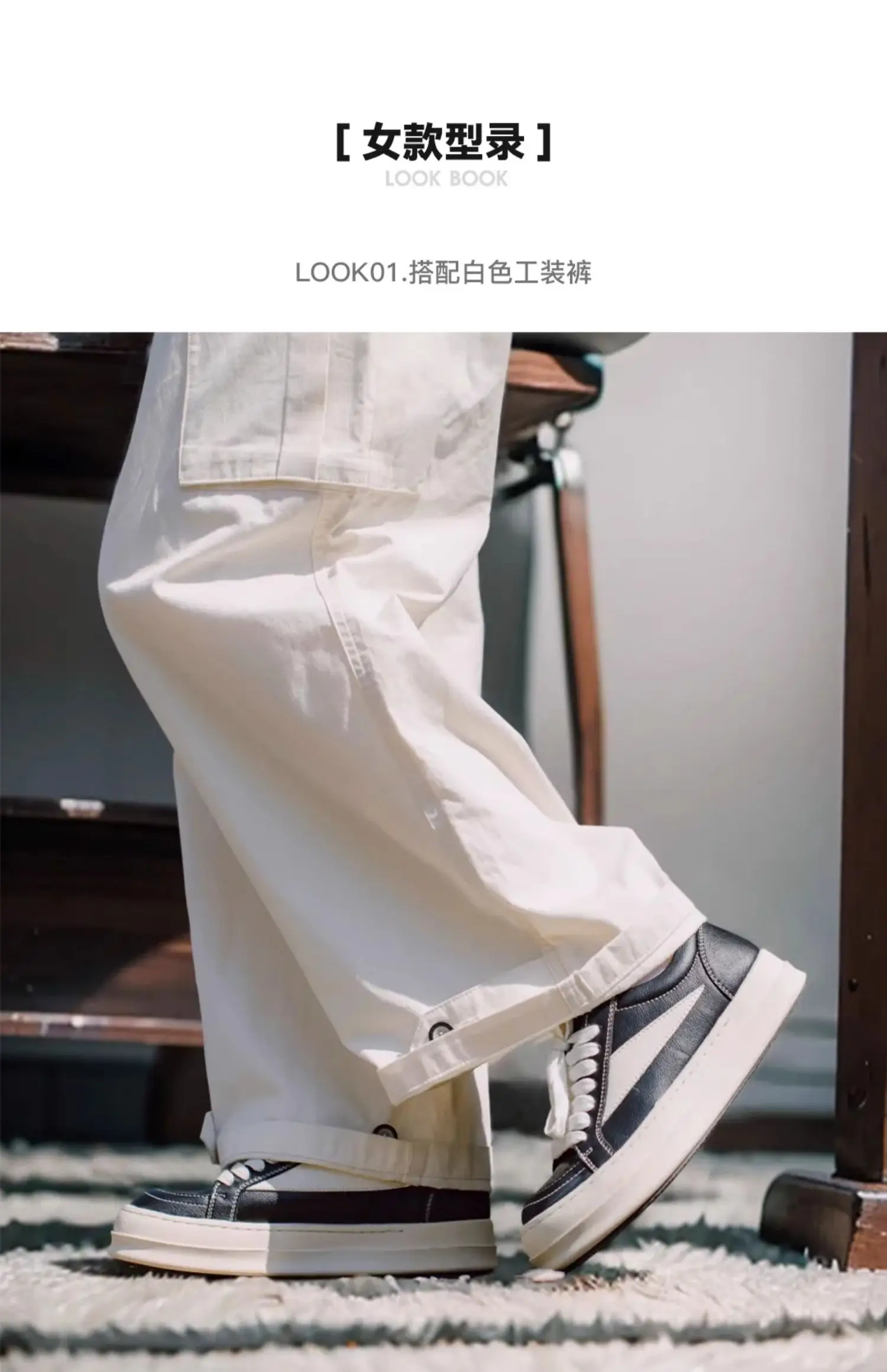 Maden Simple Versatile Thick Bottom Casual Shoes for Women Comfortable Sneakers Black and White Color Blocking Unisex Shoes