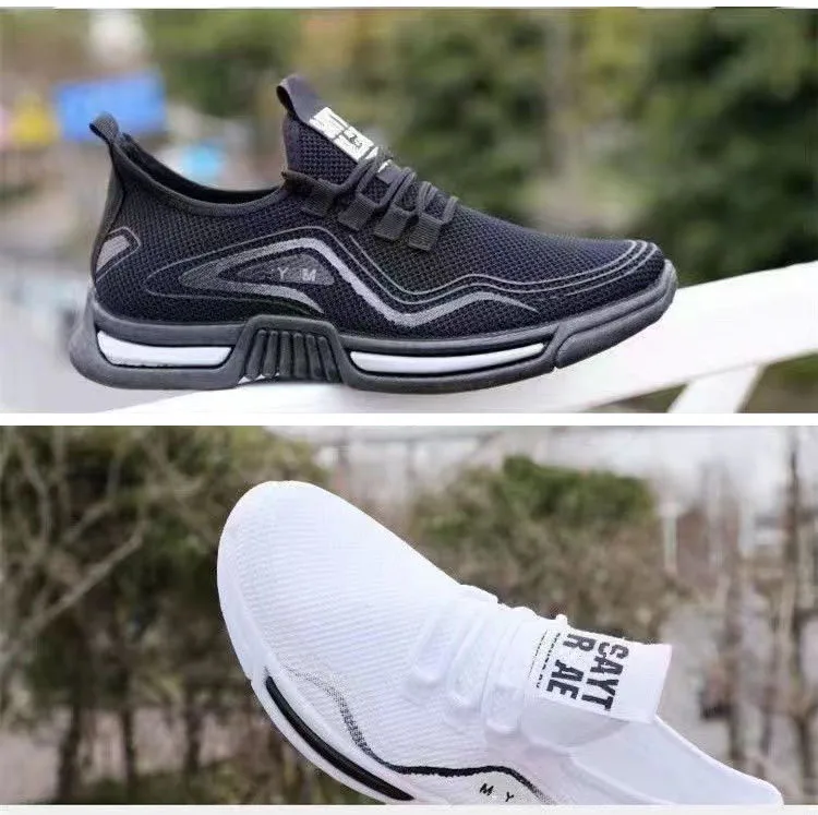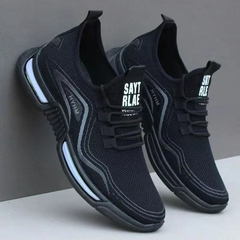 Male Lightweight Knitting Breathable Thick Soft Bottom Shoes 2023 Summer Mens Lace Up Running Shoes Casual Flats Sneakers Shoe