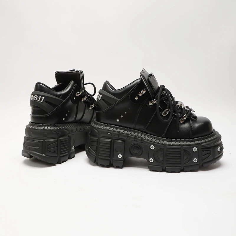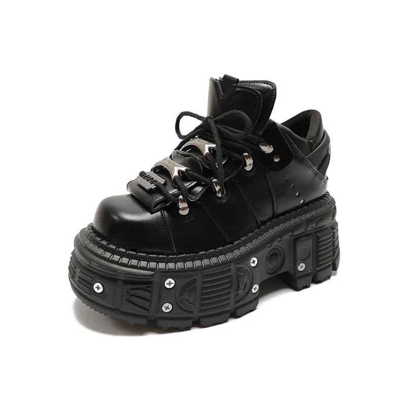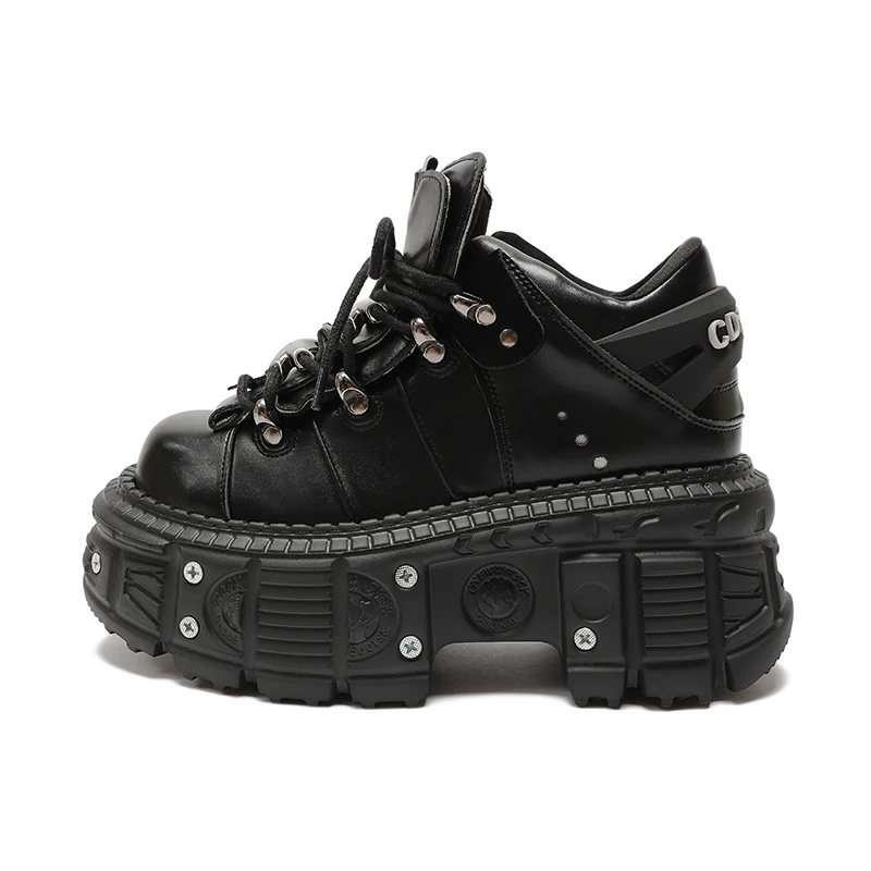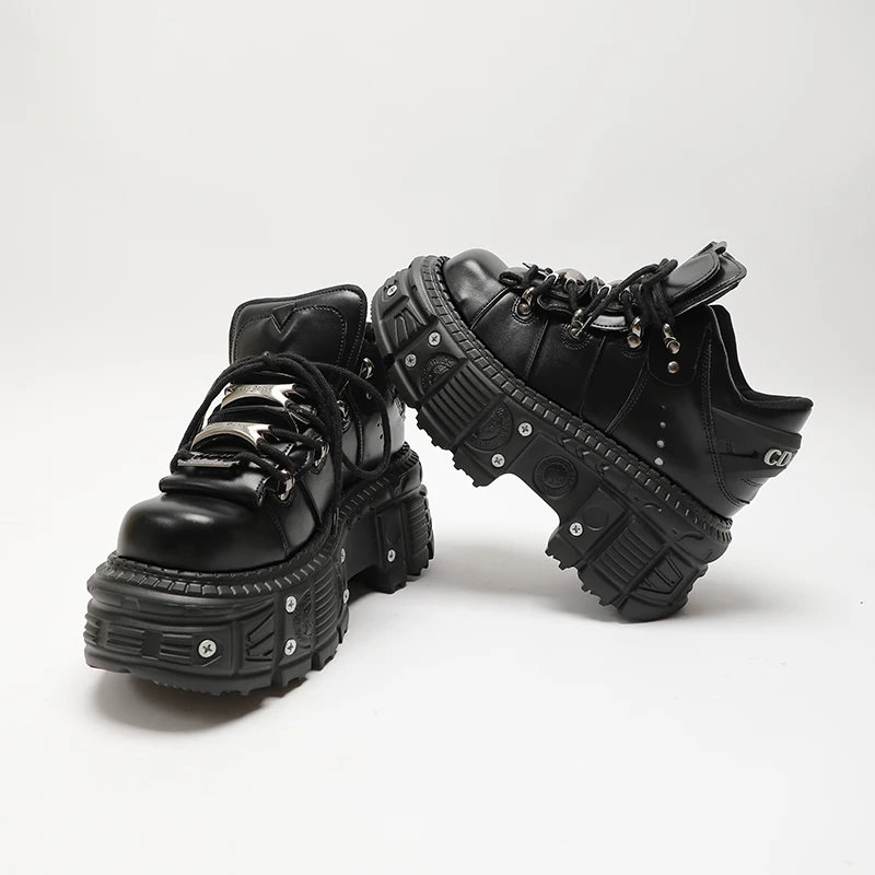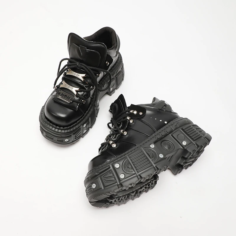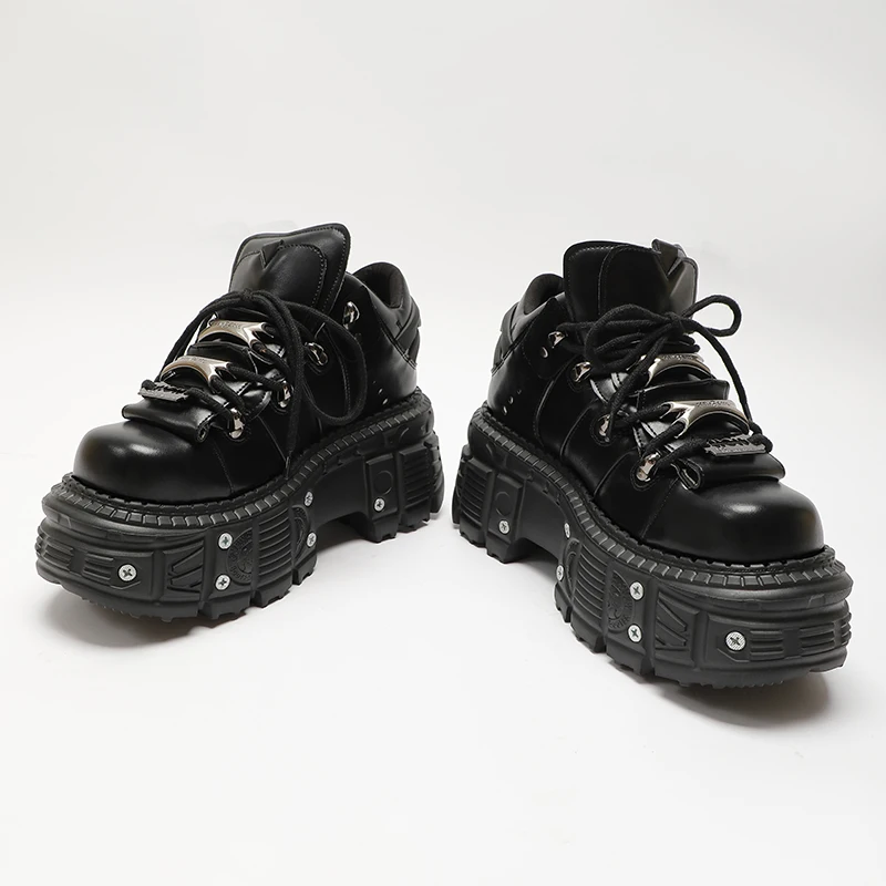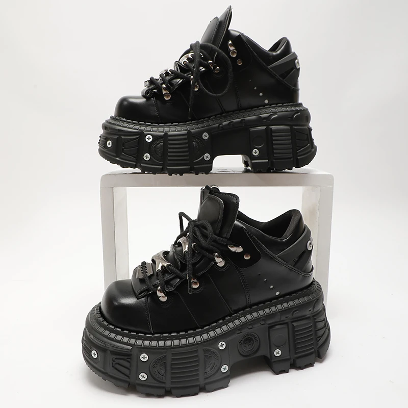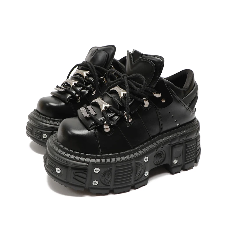 Man And Women Platform Shoes Rock Punk Style Metal Decoration Lace-Up Sneakers Gothic Unisex Thick Bottom Woman's Ankle Boots