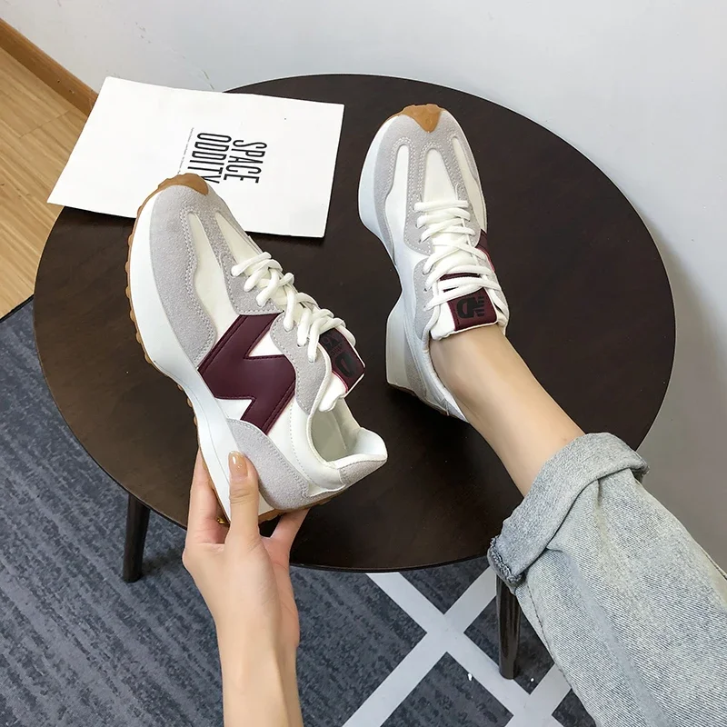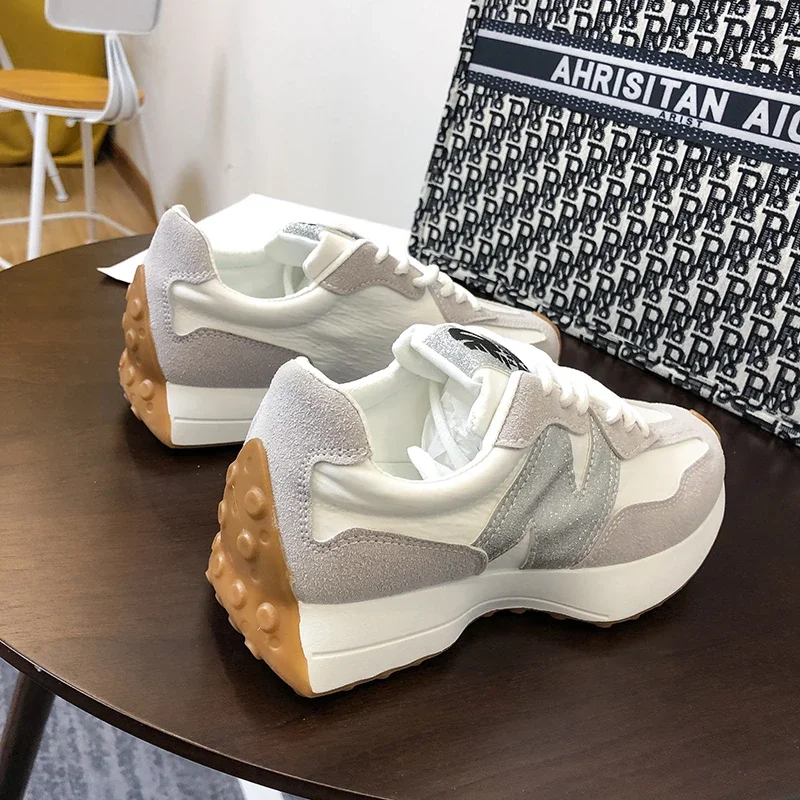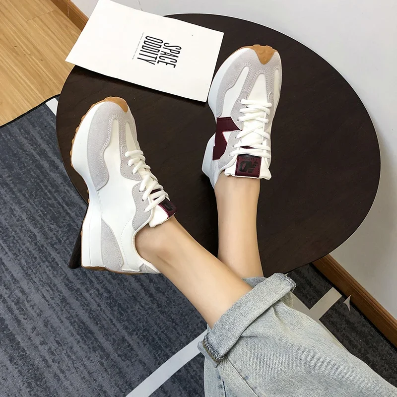Med Heel Sneakers for Women 2024 New Hot Sale Casual Rubber Ladies Shoes Solid Lace-up Pu Women's Vulcanize Shoes Zapatos