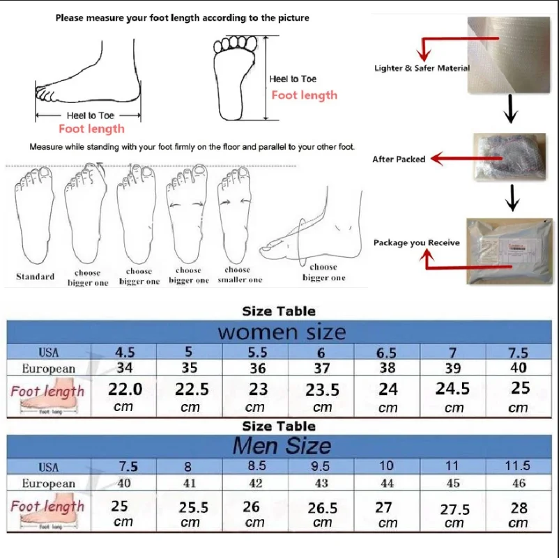 2. The size standards from different countries and different manufacturers are different, your foot length is the only criterion for choosing size.