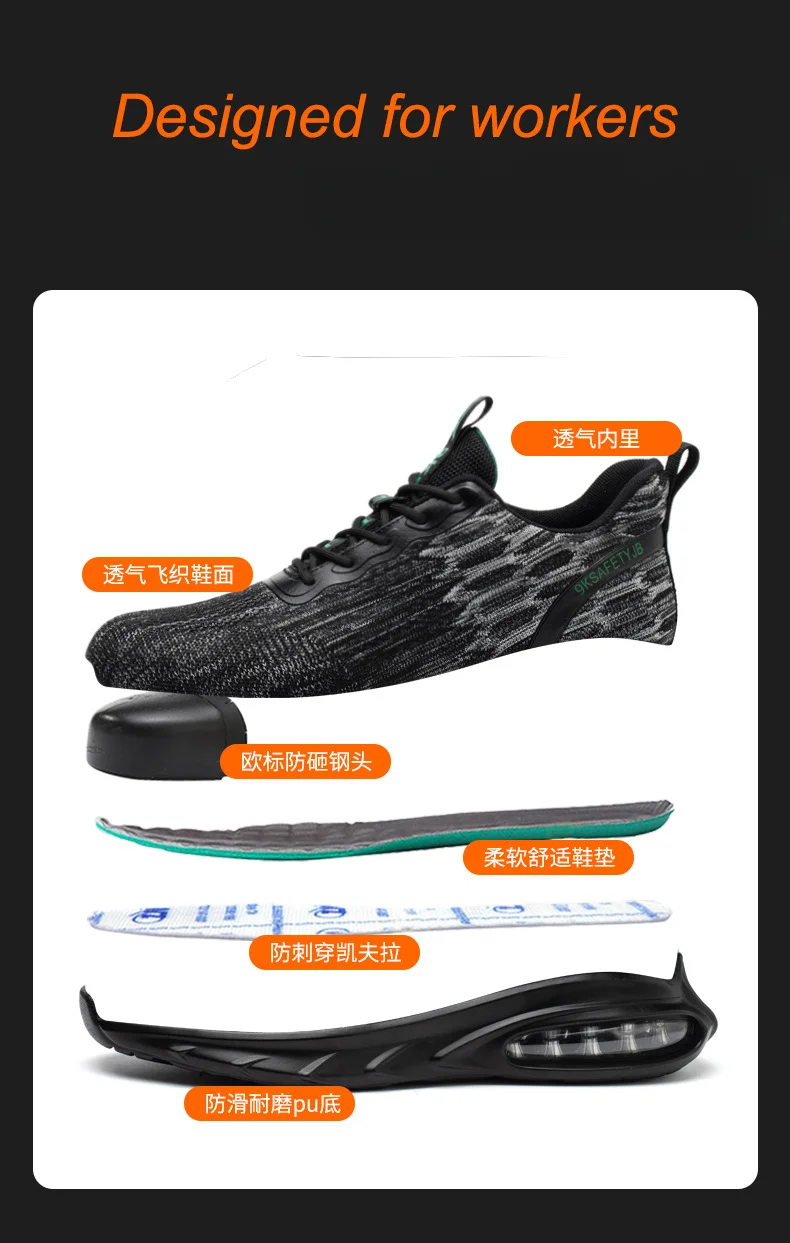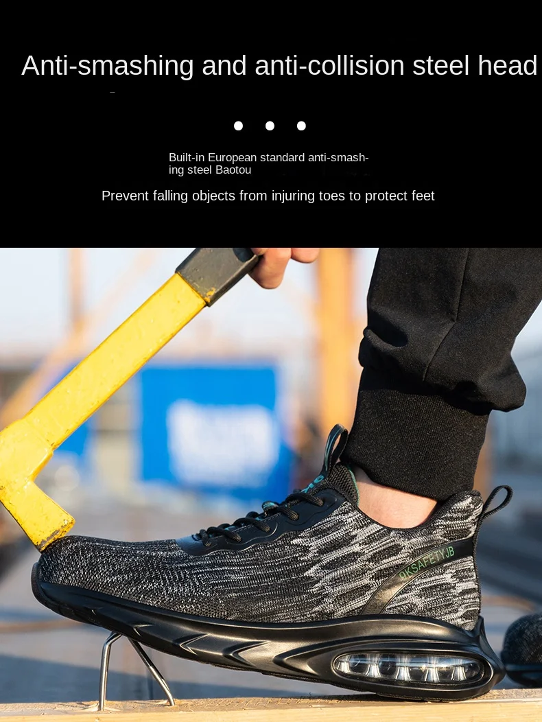 Men Construction Work Shoes Boots Anti-smashing Air Cushion Safety Shoes Men Work Sneakers Breathable Steel Toe Safety Boots