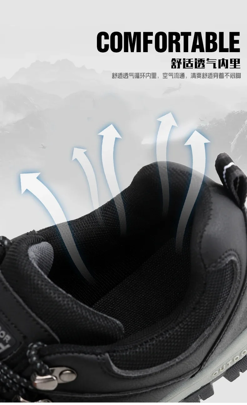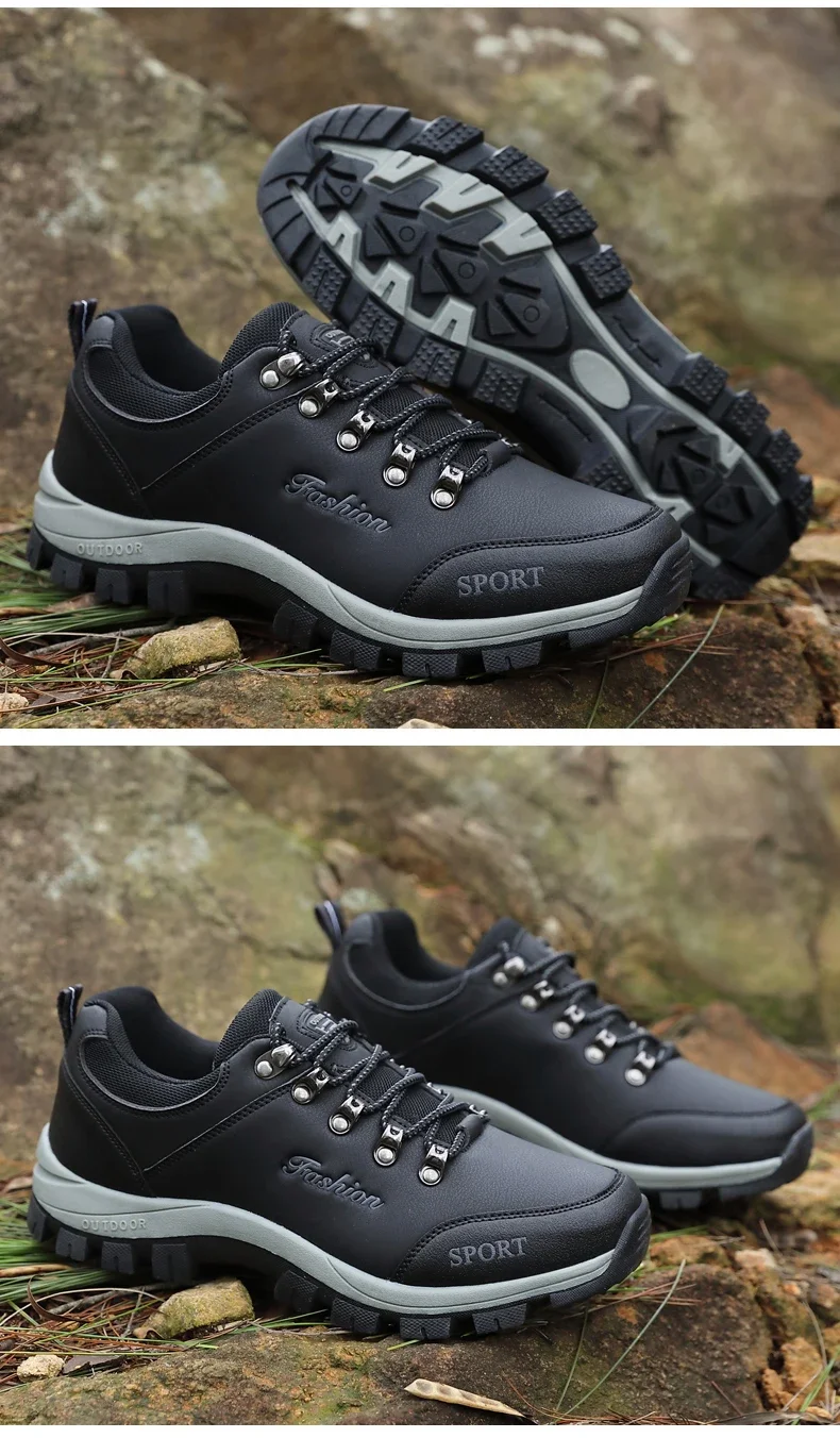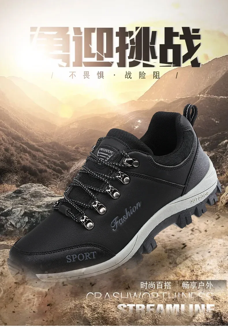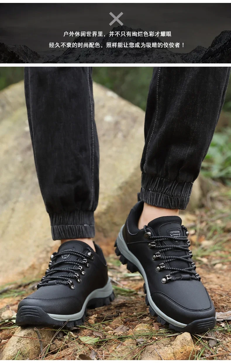 Men Hiking Shoes Waterproof Leather Snow Boots Men Sneakers 2024 Outdoor Plush Lace-up Not Slip Climbing Shoes Men Hiking Boots