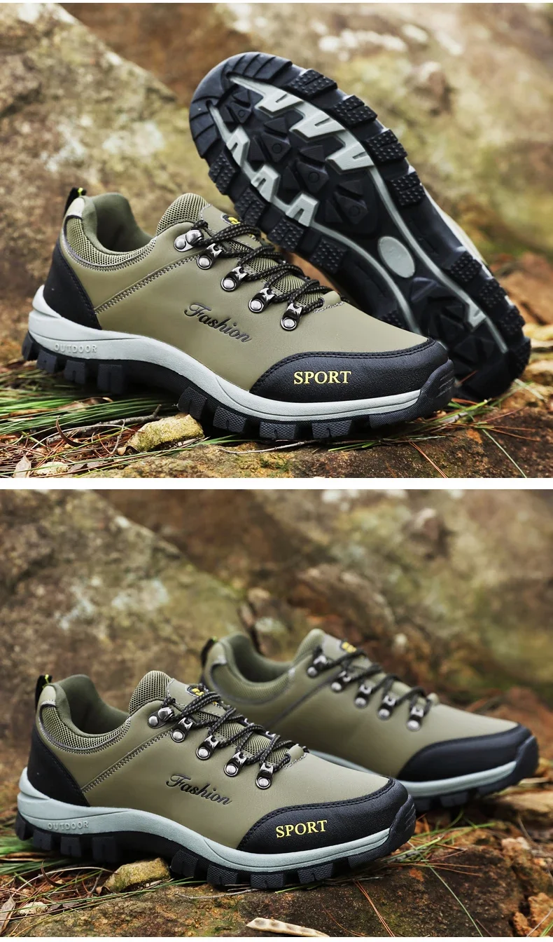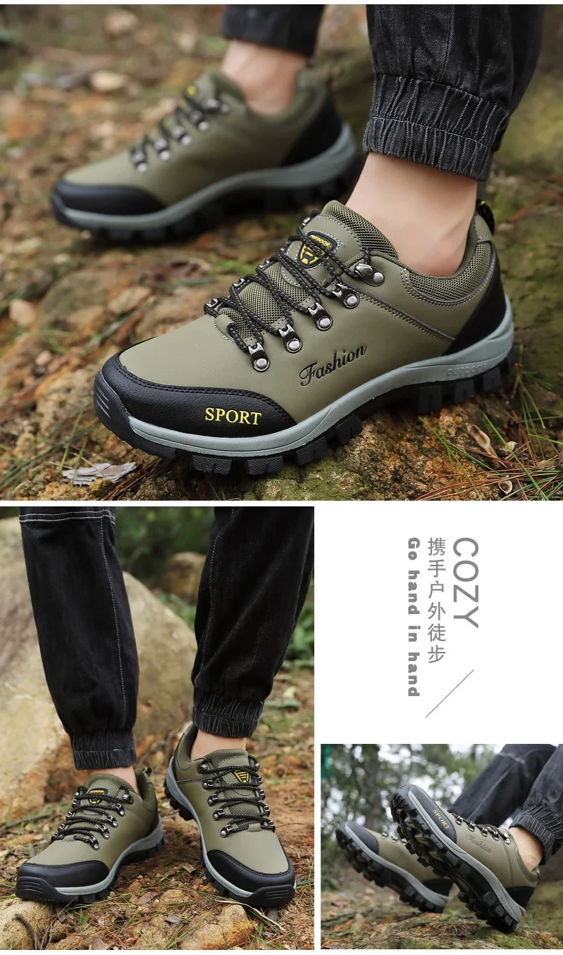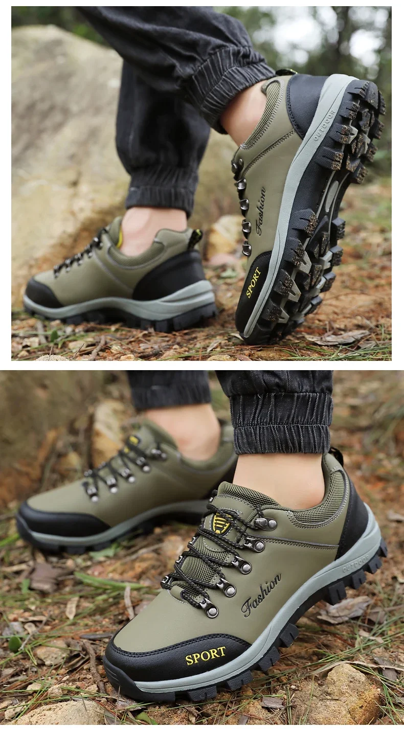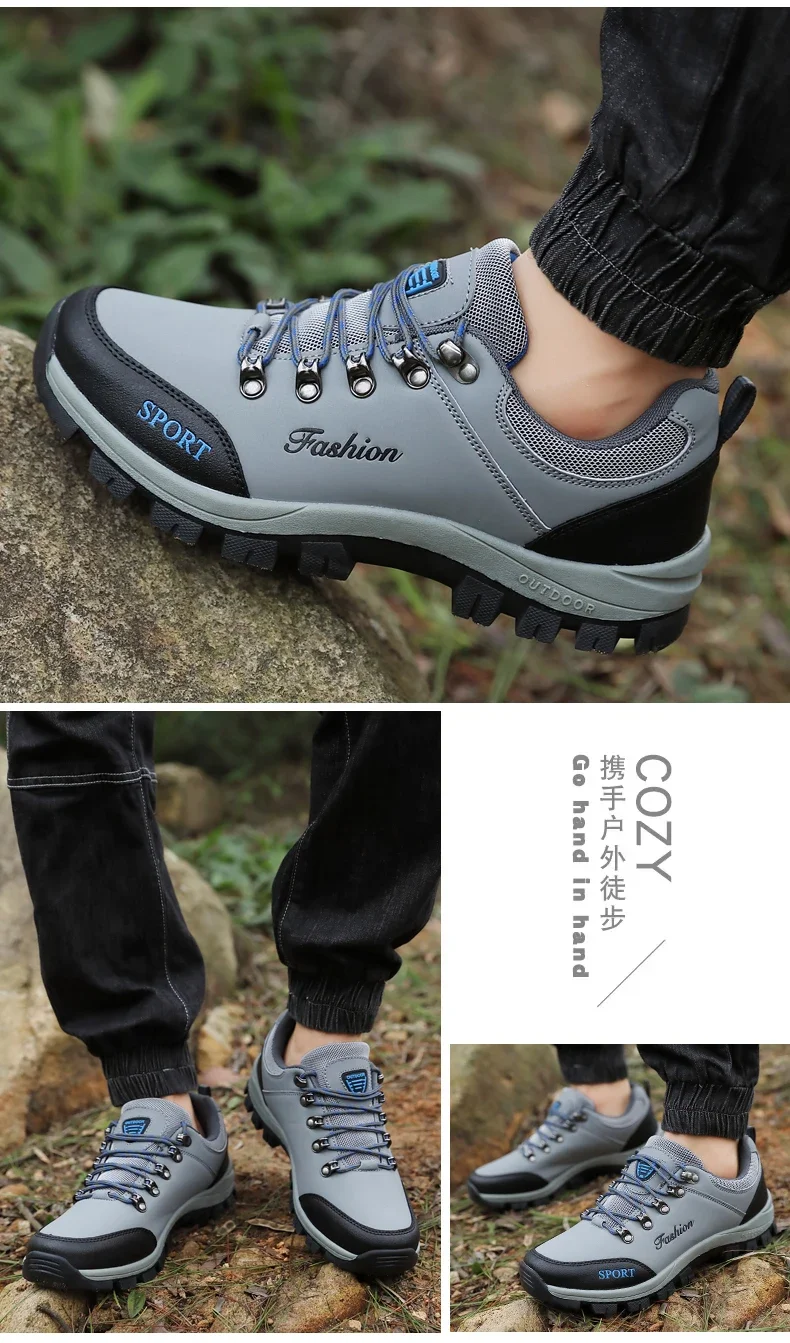 Men Hiking Shoes Waterproof Leather Snow Boots Men Sneakers 2024 Outdoor Plush Lace-up Not Slip Climbing Shoes Men Hiking Boots