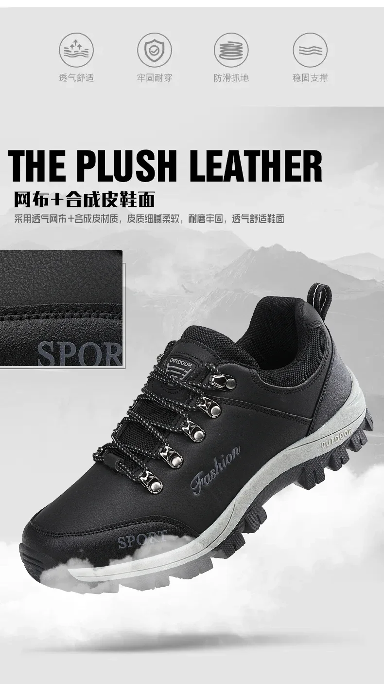 Men Hiking Shoes Waterproof Leather Snow Boots Men Sneakers 2024 Outdoor Plush Lace-up Not Slip Climbing Shoes Men Hiking Boots