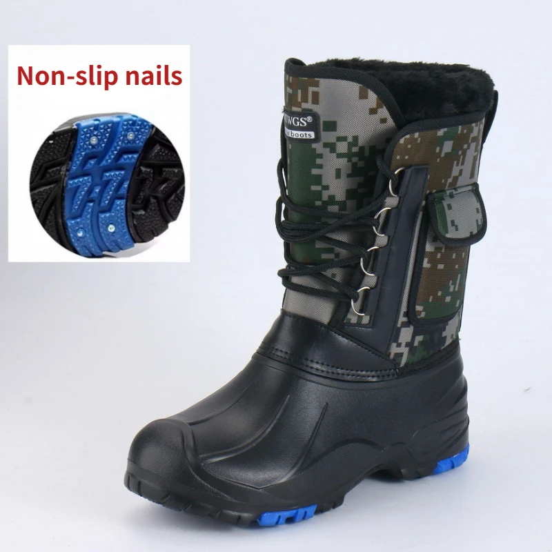Men Non-slip Nails Rain Boots Mountaineering Men Boots Cotton Rain Shoes Waterproof Fishing Shoes for Men Spring Farm Work Boots