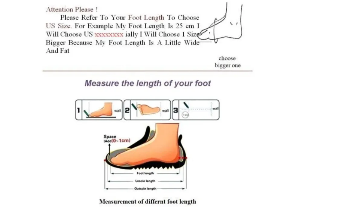 Please note 1. Choose the size according to your foot length (don't/don't choose the size according to the regular size in your country!!! 2. If your feet are a bit wide or the instep is a bit thick, it is better to choose a size