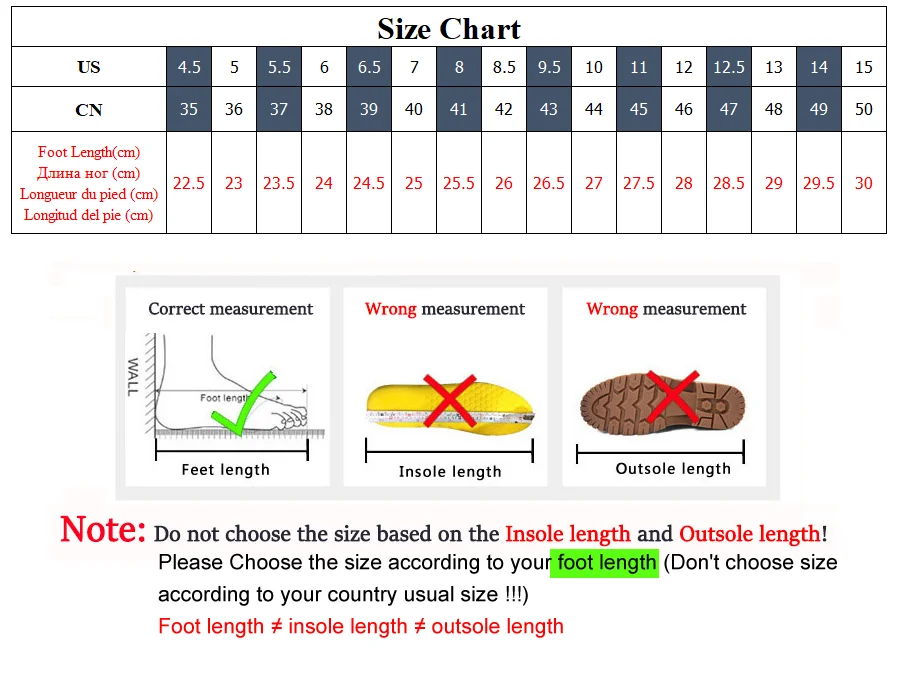 Please note 1. Choose the size according to your foot length (don't/don't choose the size according to the regular size in your country!!! 2. If your feet are a bit wide or the instep is a bit thick, it is better to choose a size
