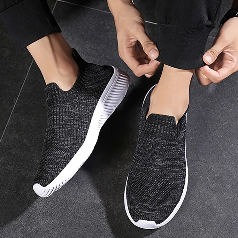 Men Shoes Lightweight Sneakers Men Knitting Casual Walking Shoes Breathable Slip On Mens Women Loafers Zapatillas Hombre MSH008