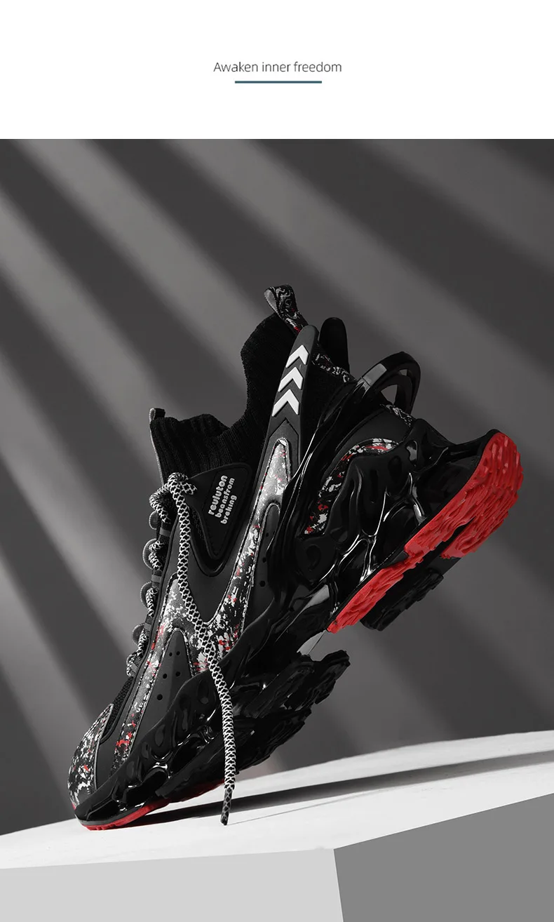 Men's Casual Sneakers Breathable Flying Woven Blade Cushioning Sports Shoes Trendy Graffiti Large Size Tennis Basketball Shoe