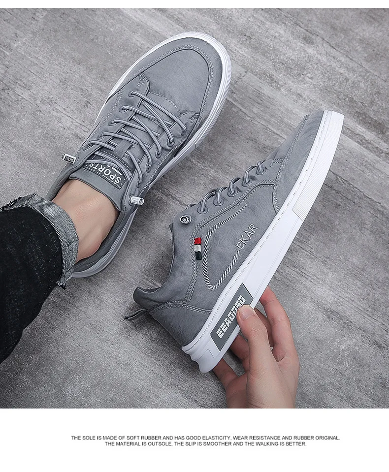 Men's Casual Sneakers Lace Up Trendy Original Casual Brand Flat Shoes for Men Summer Comfortable gray Casual Canvas Shoe