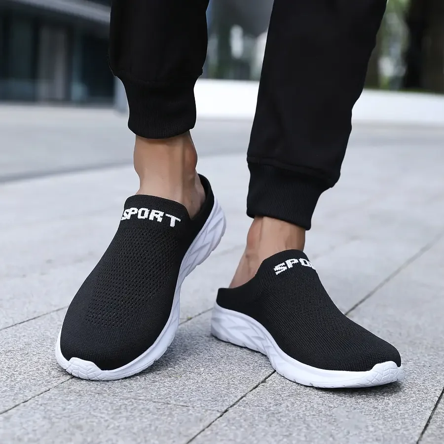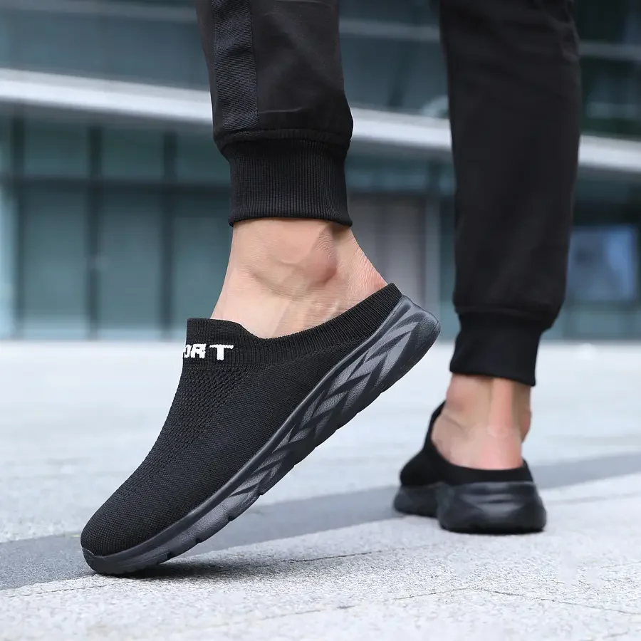Mens Half Slippers Summer Breathable Mesh Mens Shoes Outdoor Casual Walking Shoes Large Size Flat Loafer Slippers Sandals