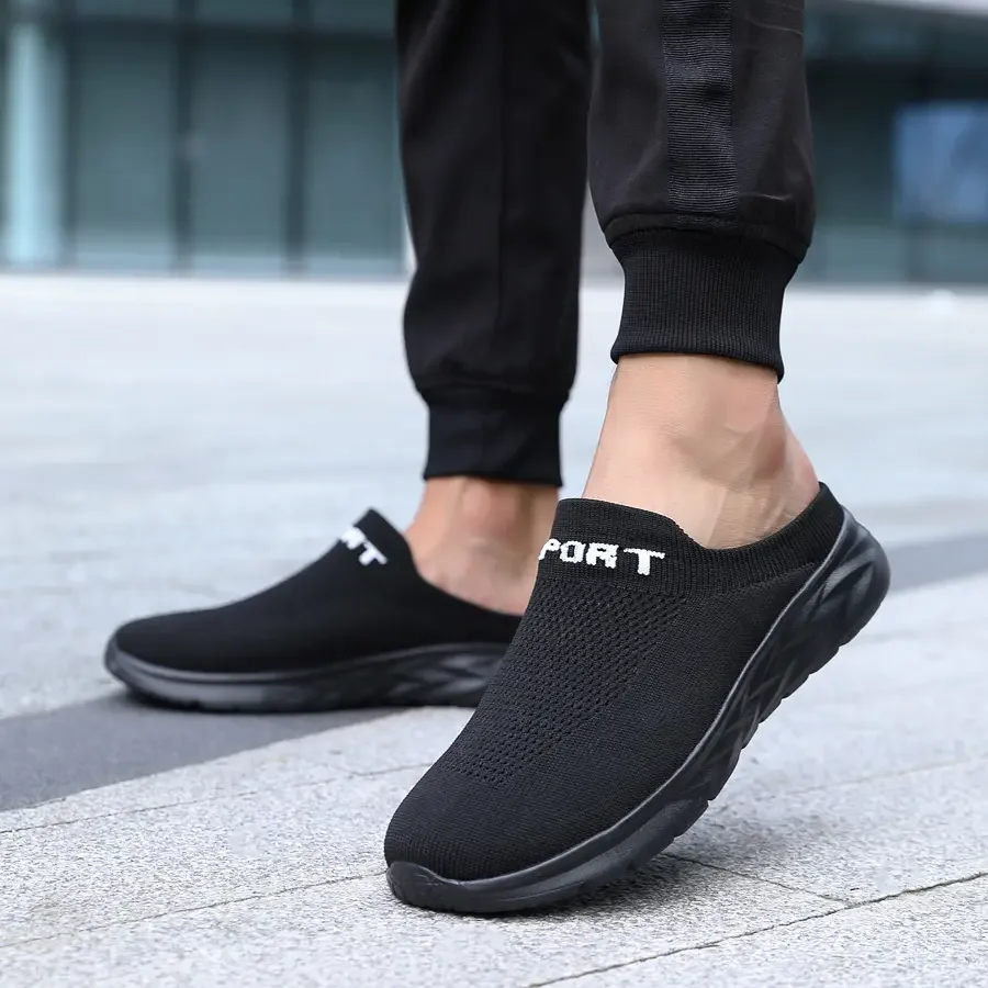 Mens Half Slippers Summer Breathable Mesh Mens Shoes Outdoor Casual Walking Shoes Large Size Flat Loafer Slippers Sandals