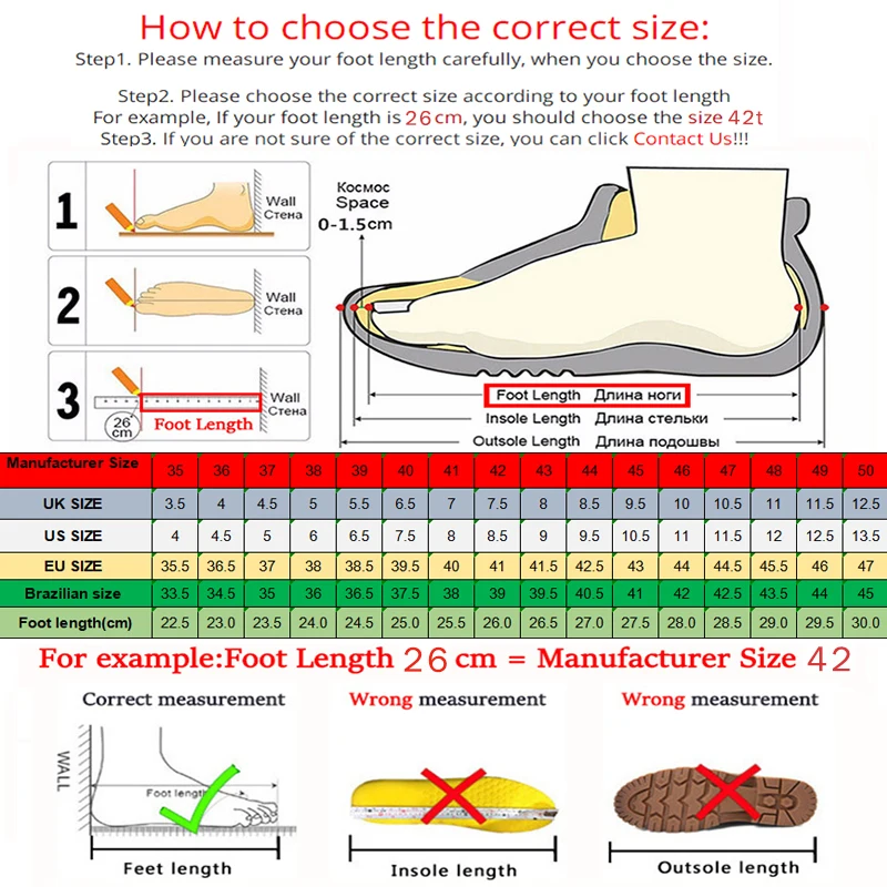 NOTE: Don't choose the size based on the Insole length and Outsole length!