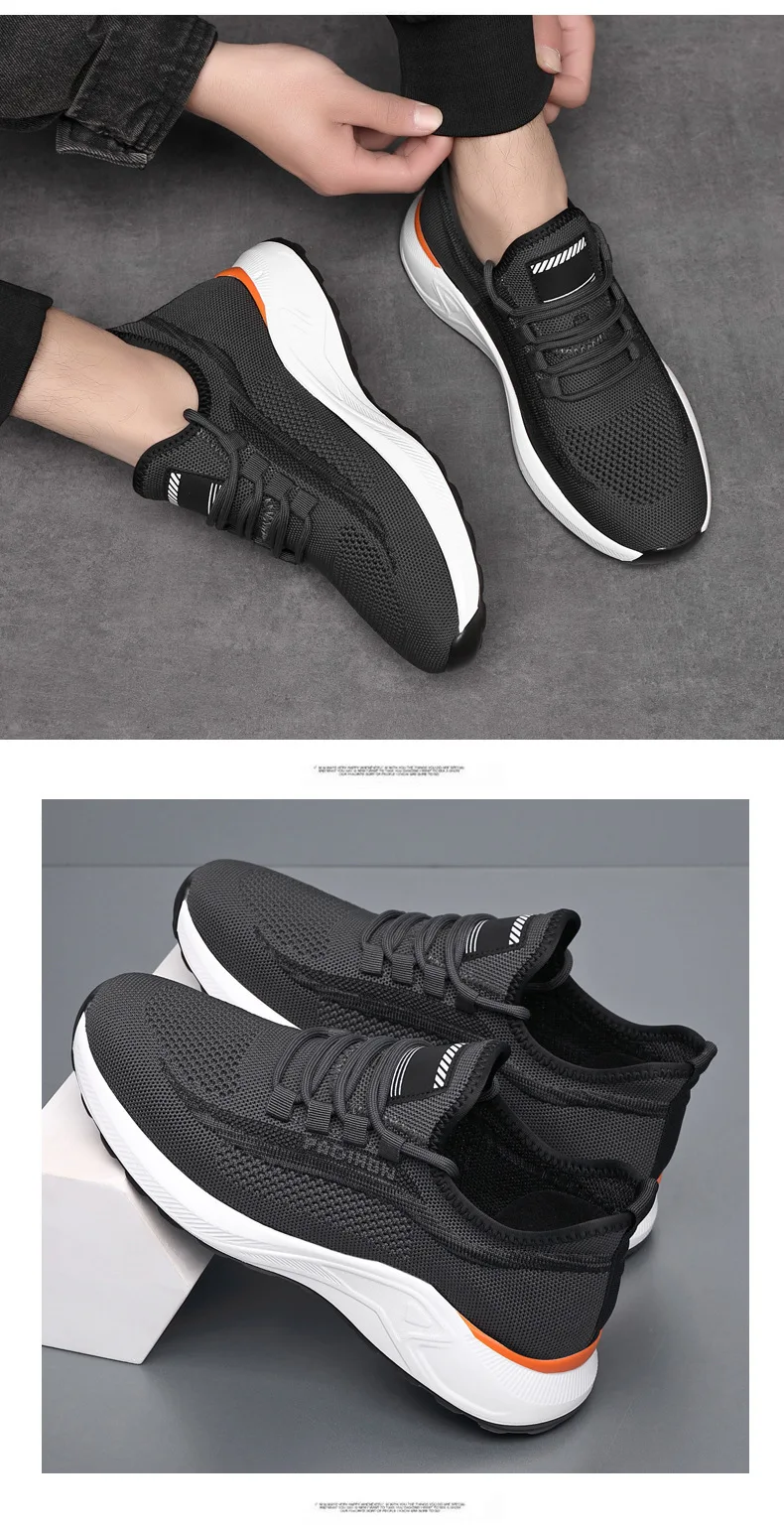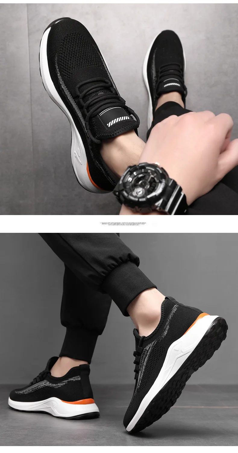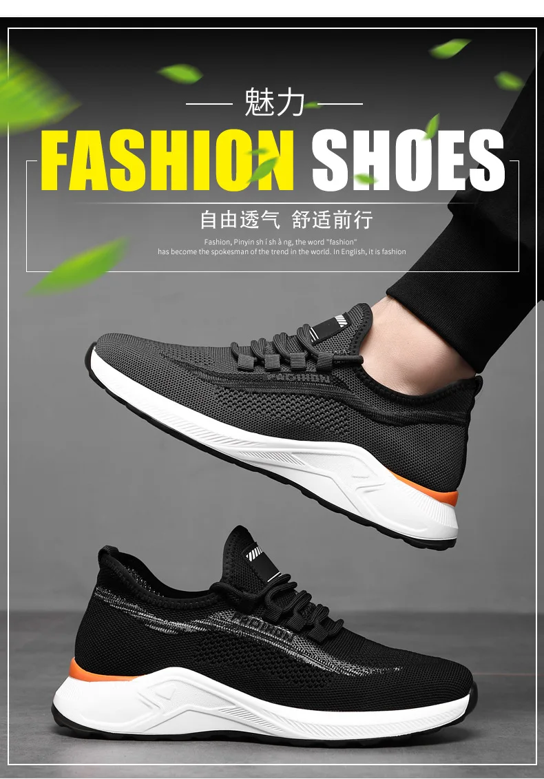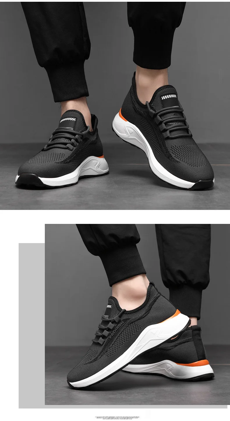 Men's New Soft-soled Sports and Casual Shoes Men's Hollow Breathable Mesh Height-Increasing Shoes Outdoor Travel Trendy Shoes