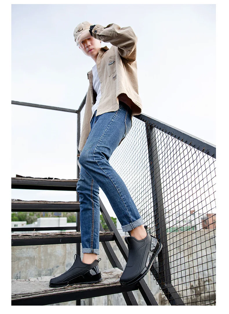 Men's Outdoor Non-slip Hiking Shoes Shaxi Fishing Rain Boots Black Work Shoes Durable Waterproof Rubber Fishing Shoes 2024