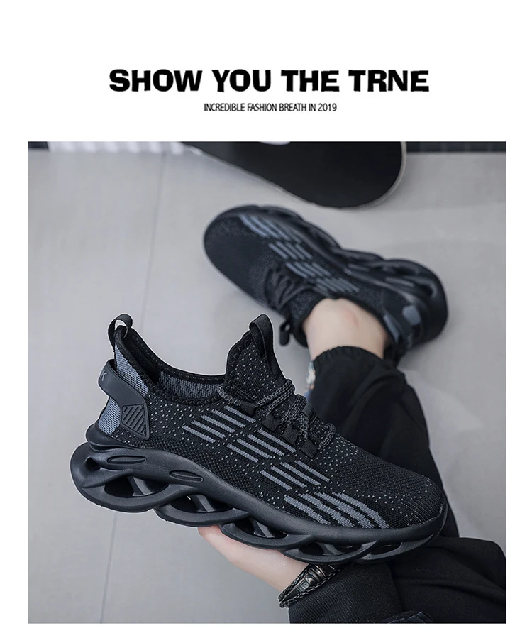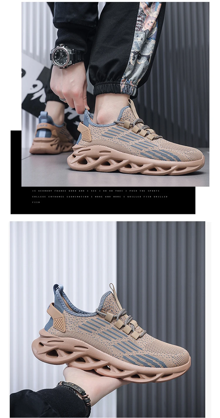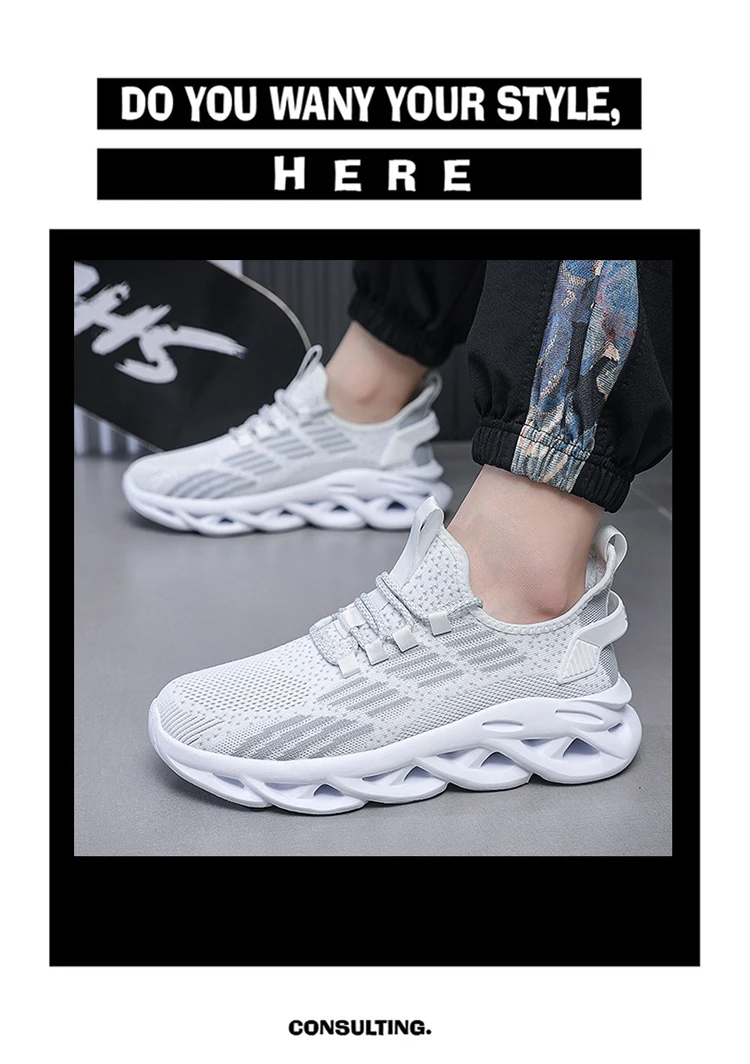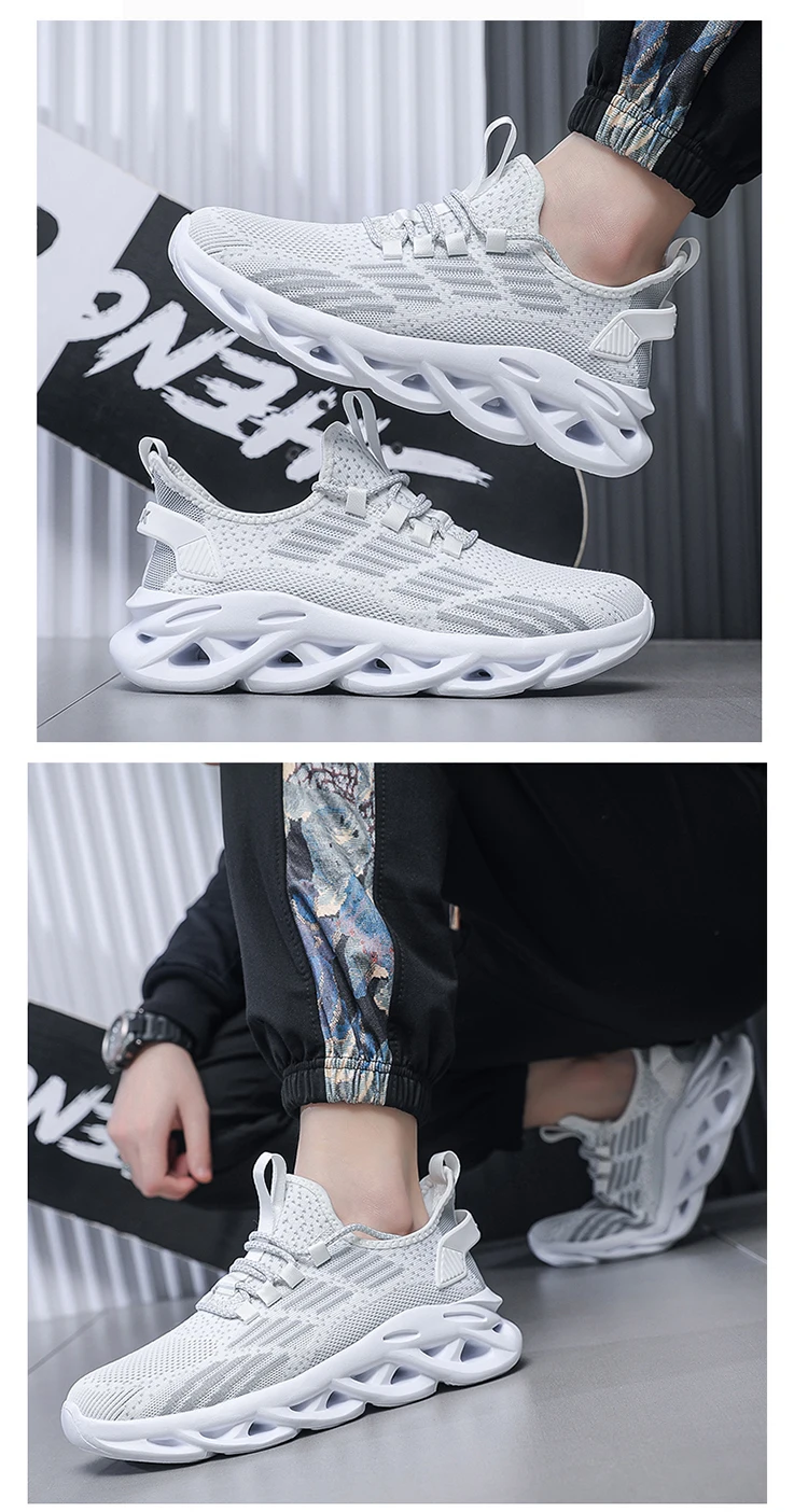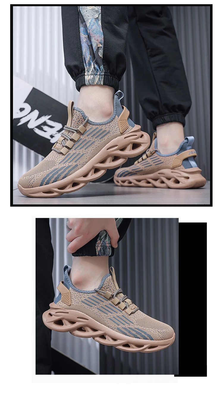 Men's running walking knit shoes Fashion casual sports shoes Breathable non-slip lightweight loafers plus size men's shoes