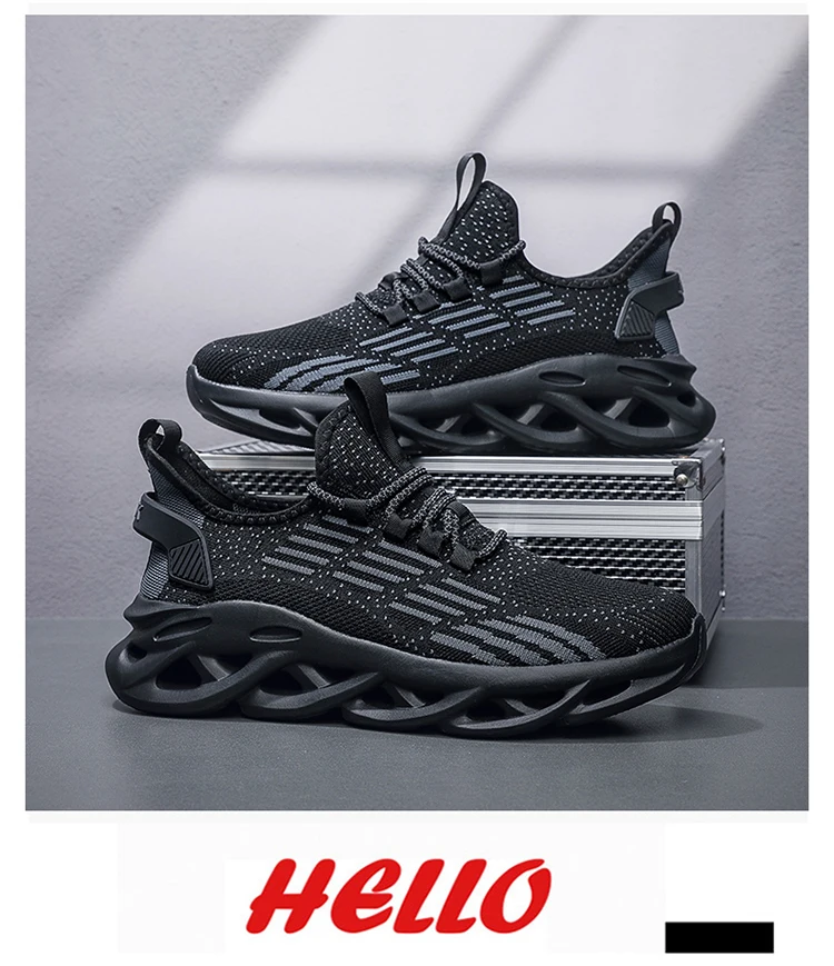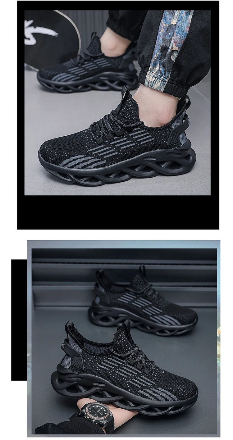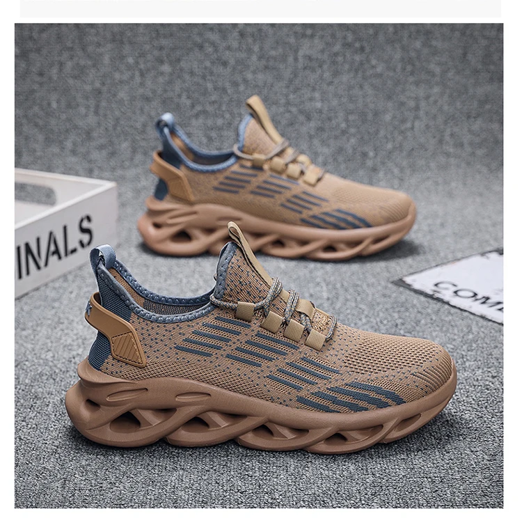 Men's running walking knit shoes Fashion casual sports shoes Breathable non-slip lightweight loafers plus size men's shoes