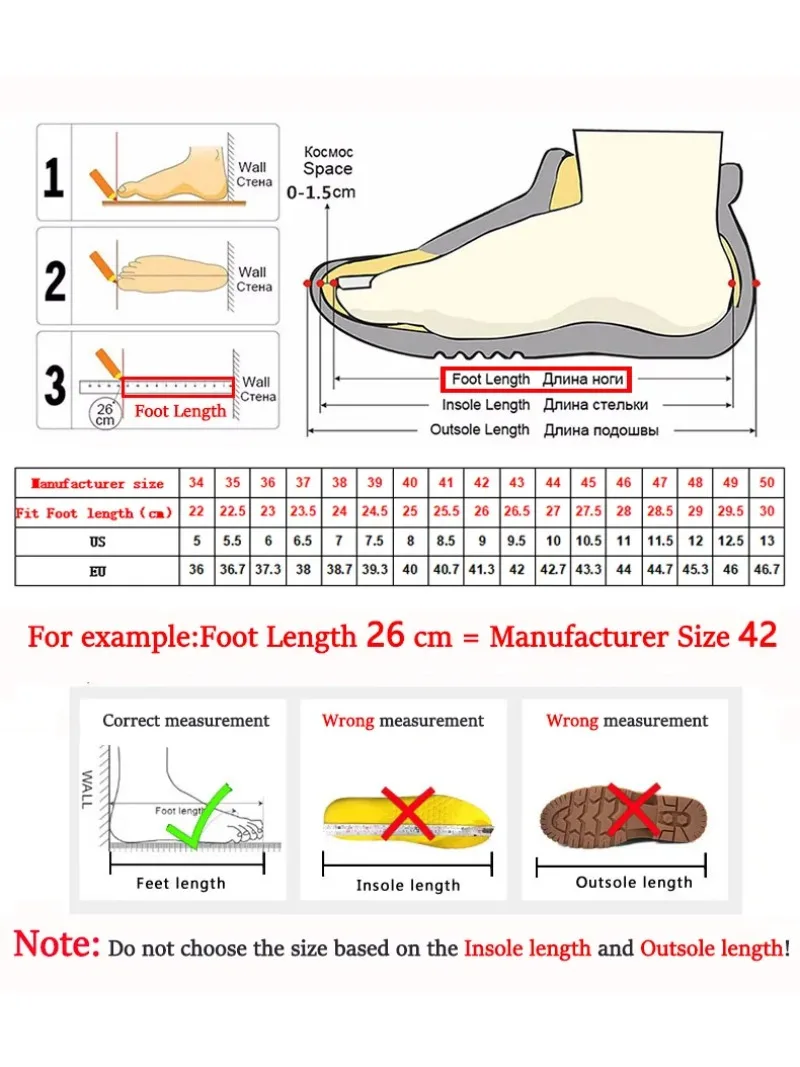 Before you make the order, you should be careful to measure your feet length (from heel to toe) and then you should pay more attention to our size table. You can find suitable size for you in our size table. Finally, you decide what size you buy.