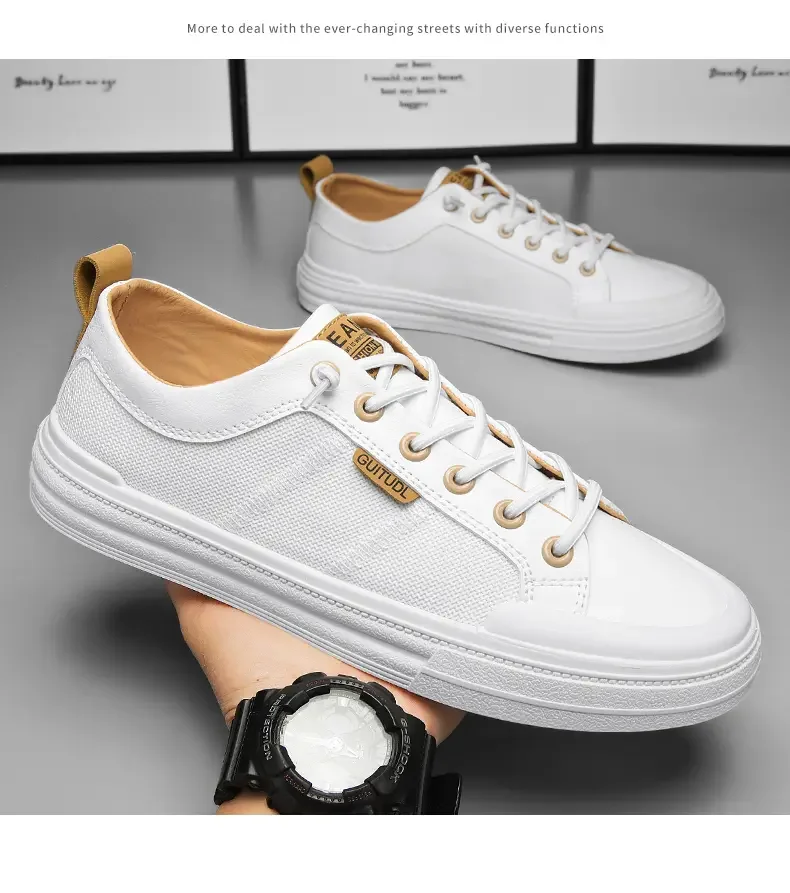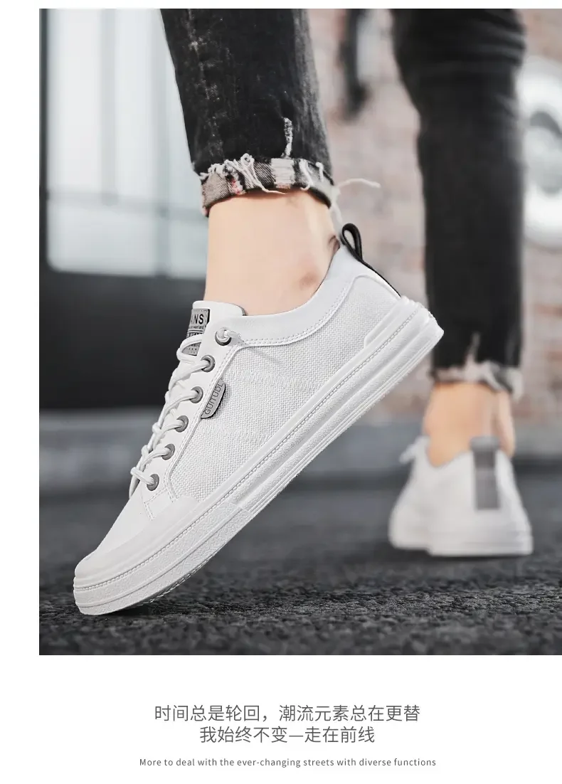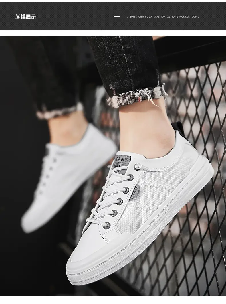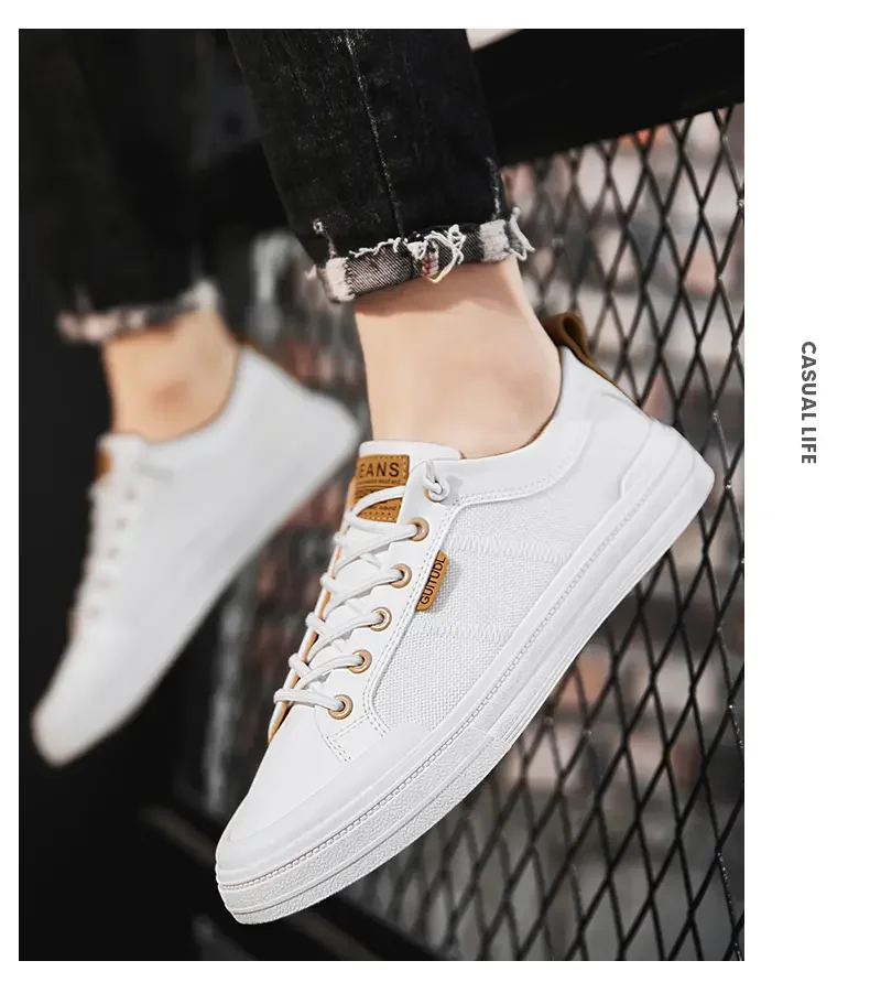 Men's Sneakers Man Casual Sports Shoes for Men Lightweight PU Leather Breathable Shoe Mens Flat White Travel Tenis Sneaker 2023