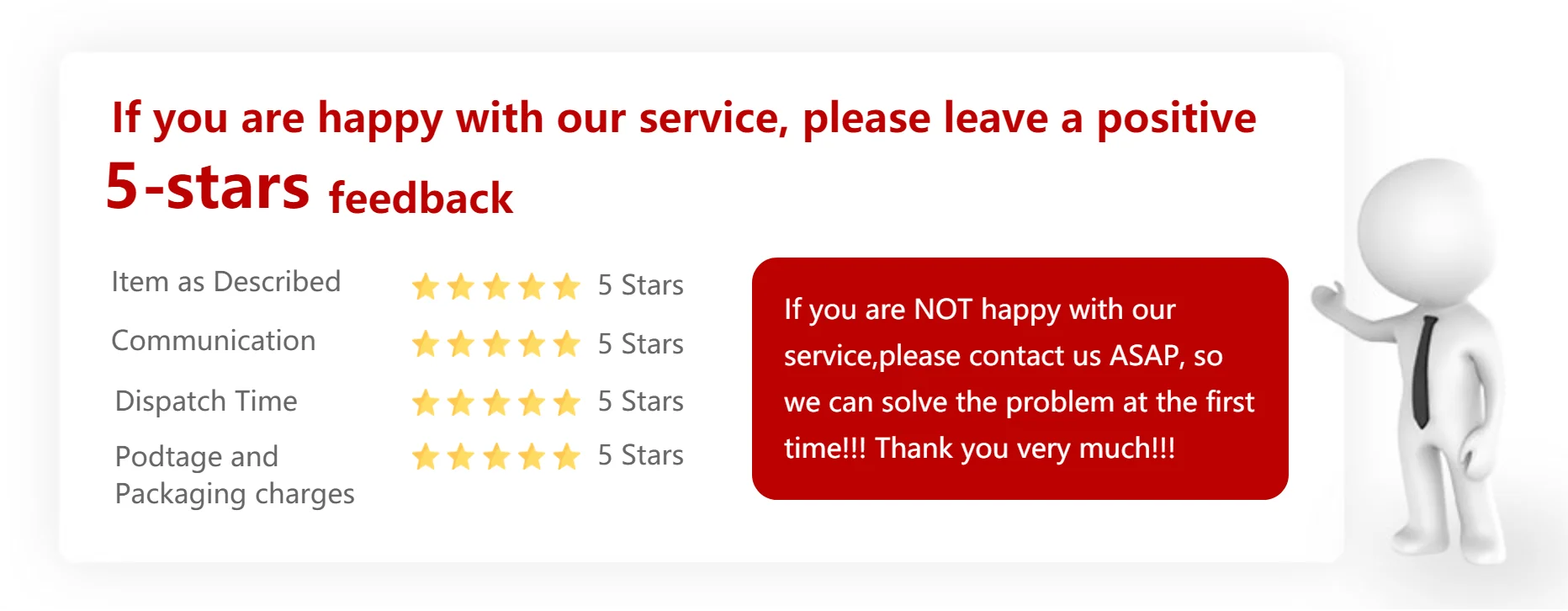 please leave us all 5 stars including Item as Described. Communication and Shipping Speed.