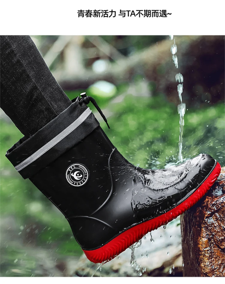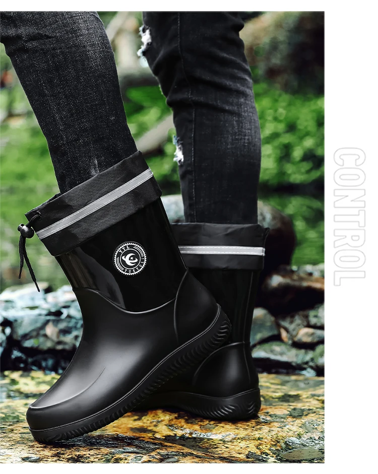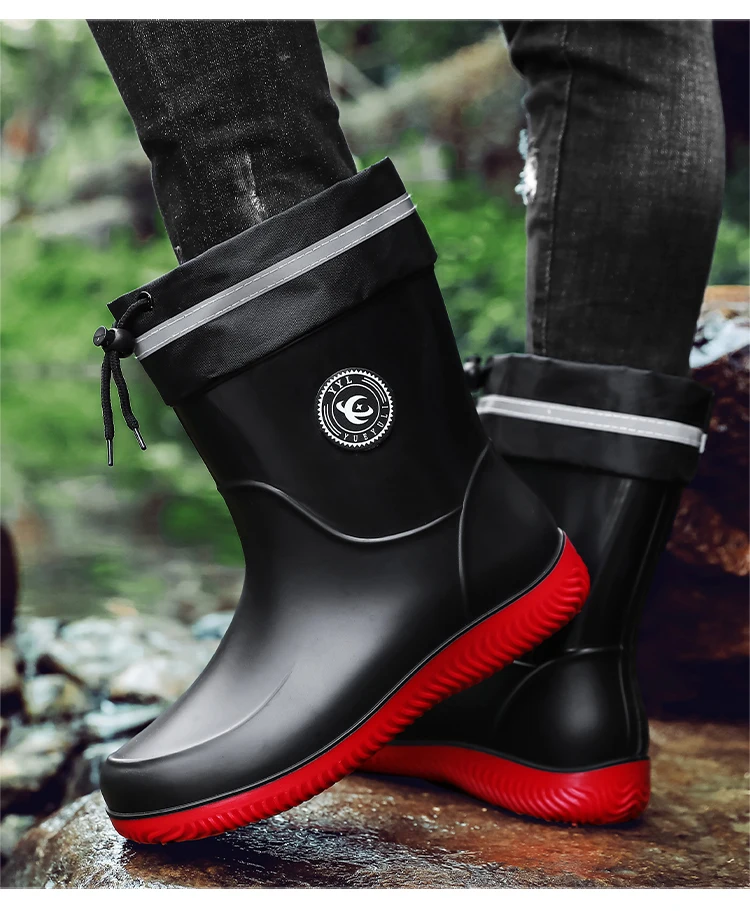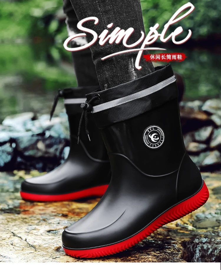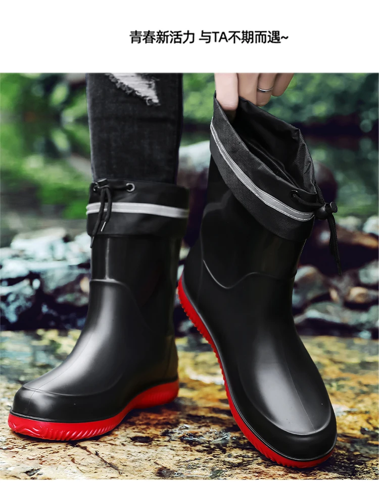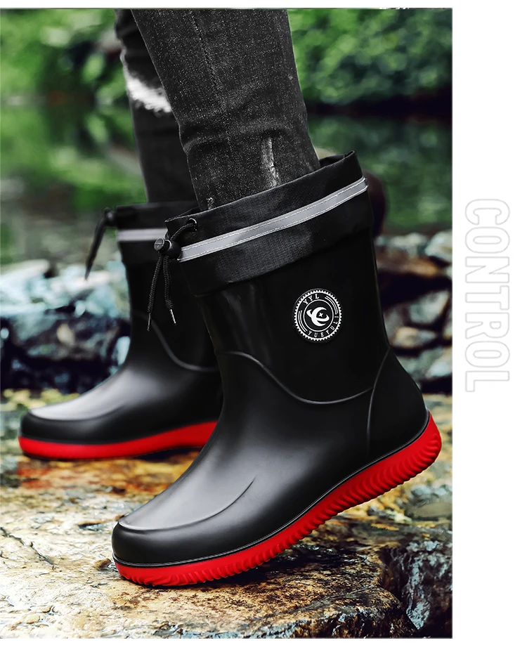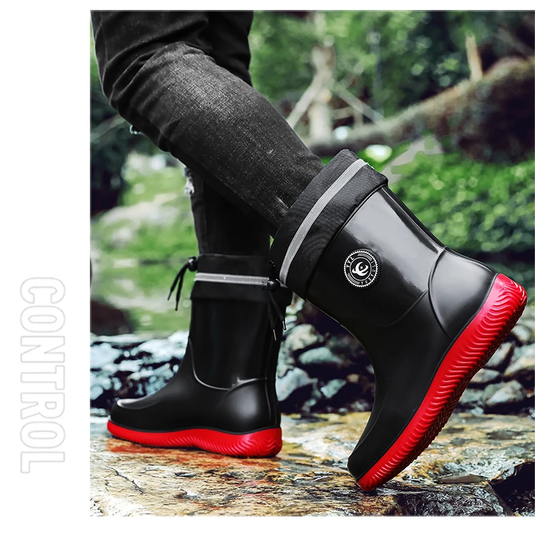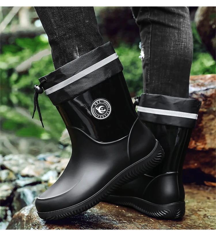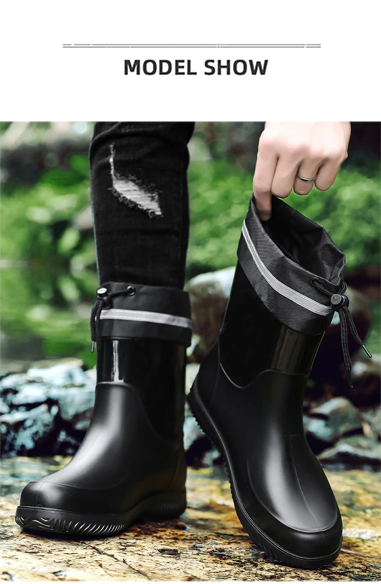 Men's Waterproof Rain Boot Men Outdoor Slip-on Fishing Shoes Chef Work Ankle Boots Mens Casual Anti-slip Water Shoes Big Size 48