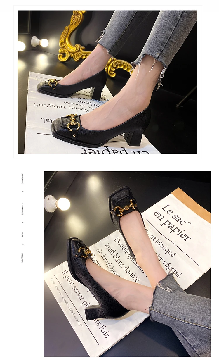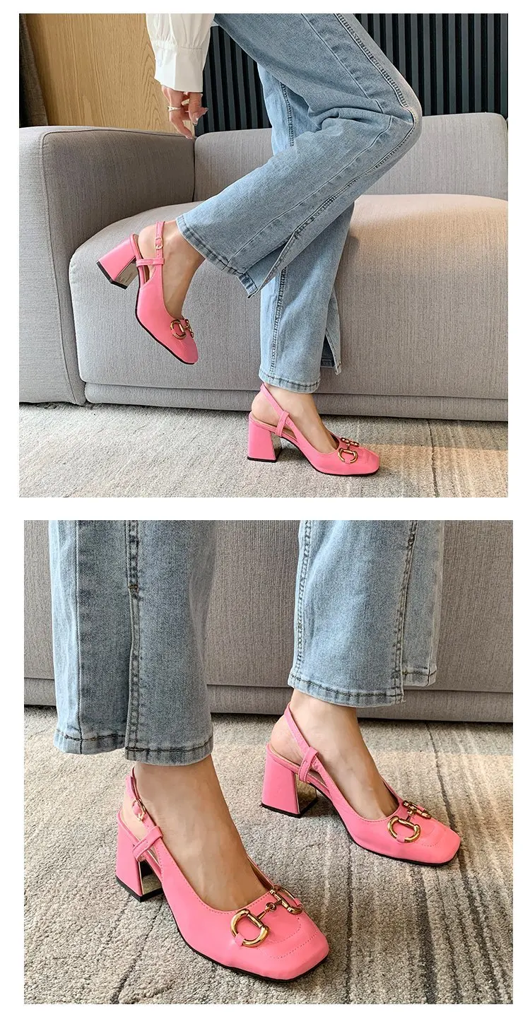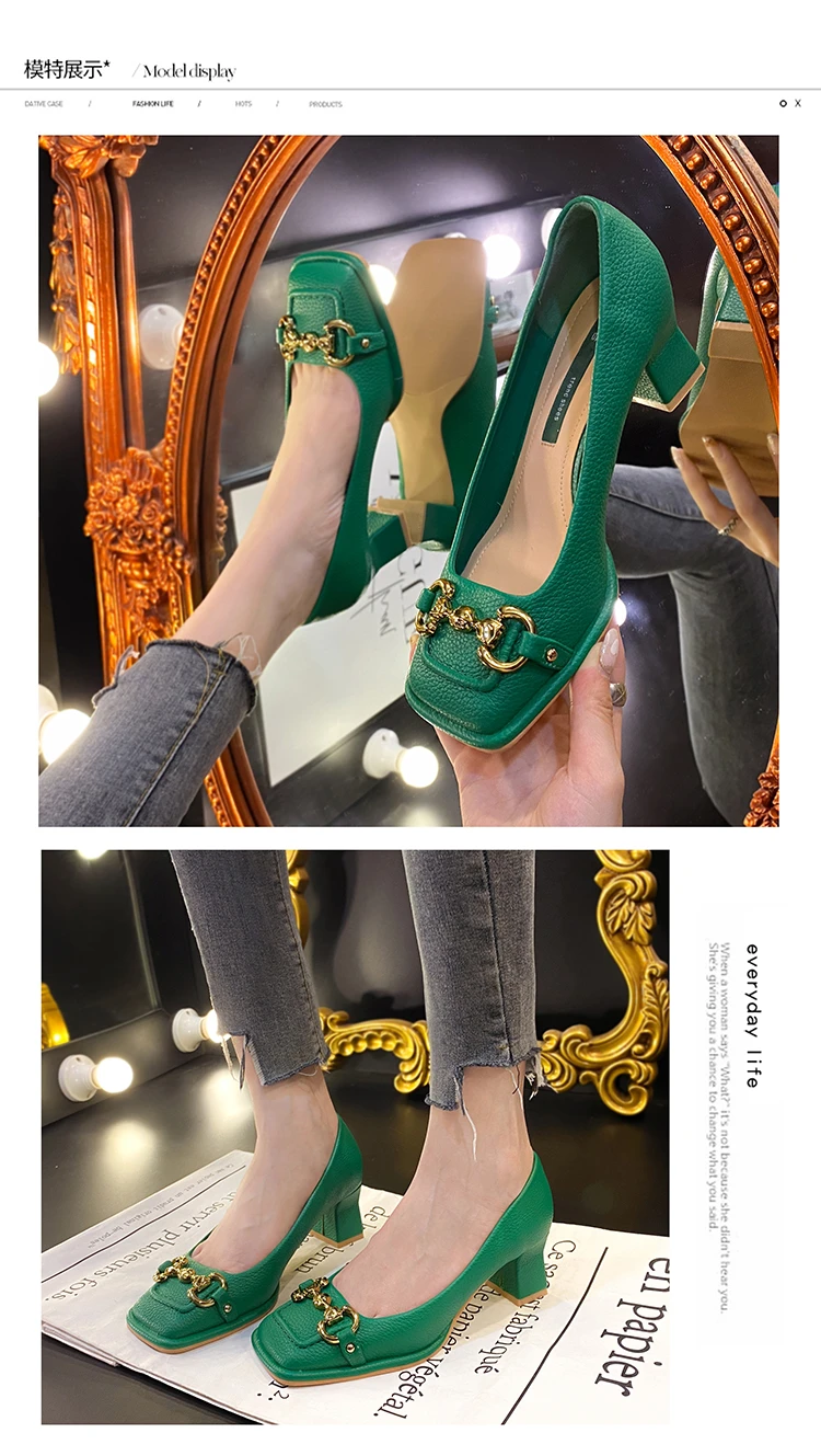 Metal Buckle Temperament High Heels Women's 2023 New Fashion Thick Heel Mary Jane Small Leather Shoes Square Toe Shoes