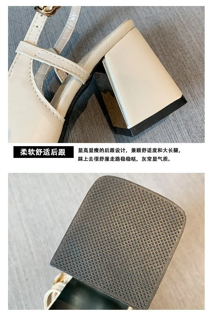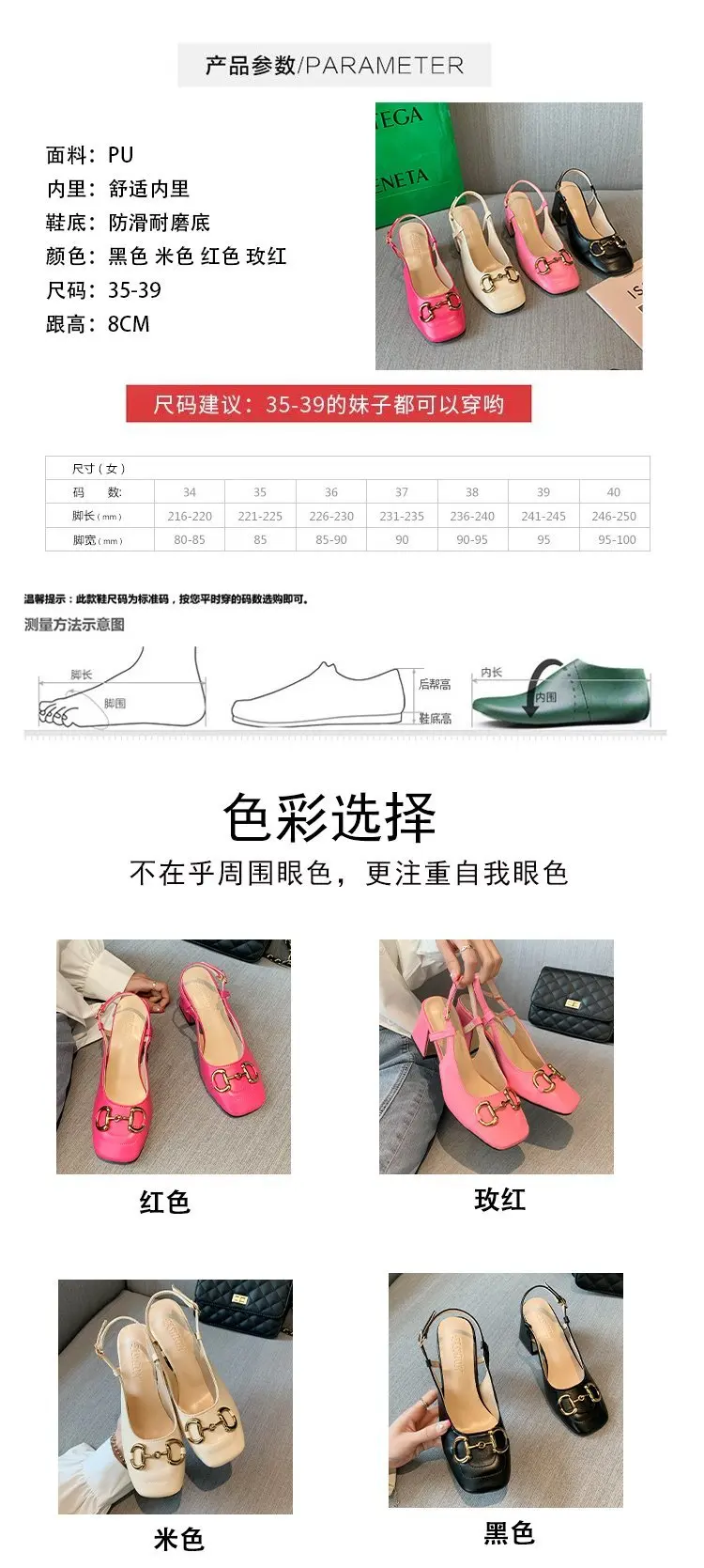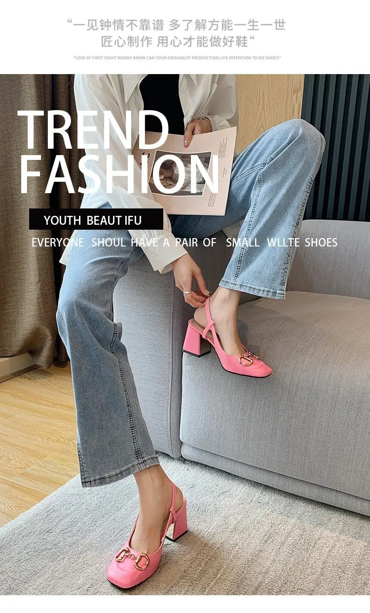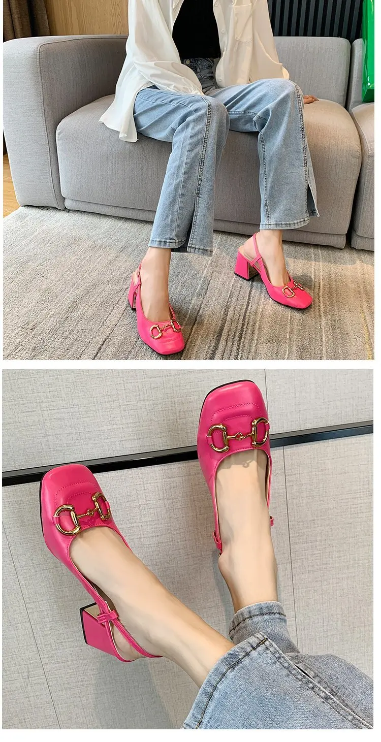 Metal Buckle Temperament High Heels Women's 2023 New Fashion Thick Heel Mary Jane Small Leather Shoes Square Toe Shoes