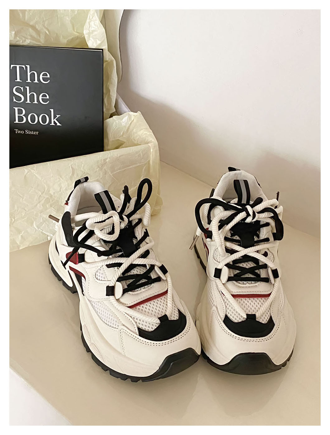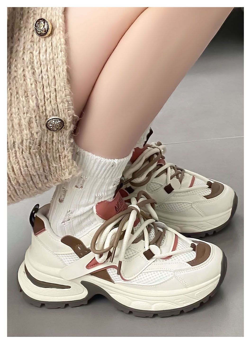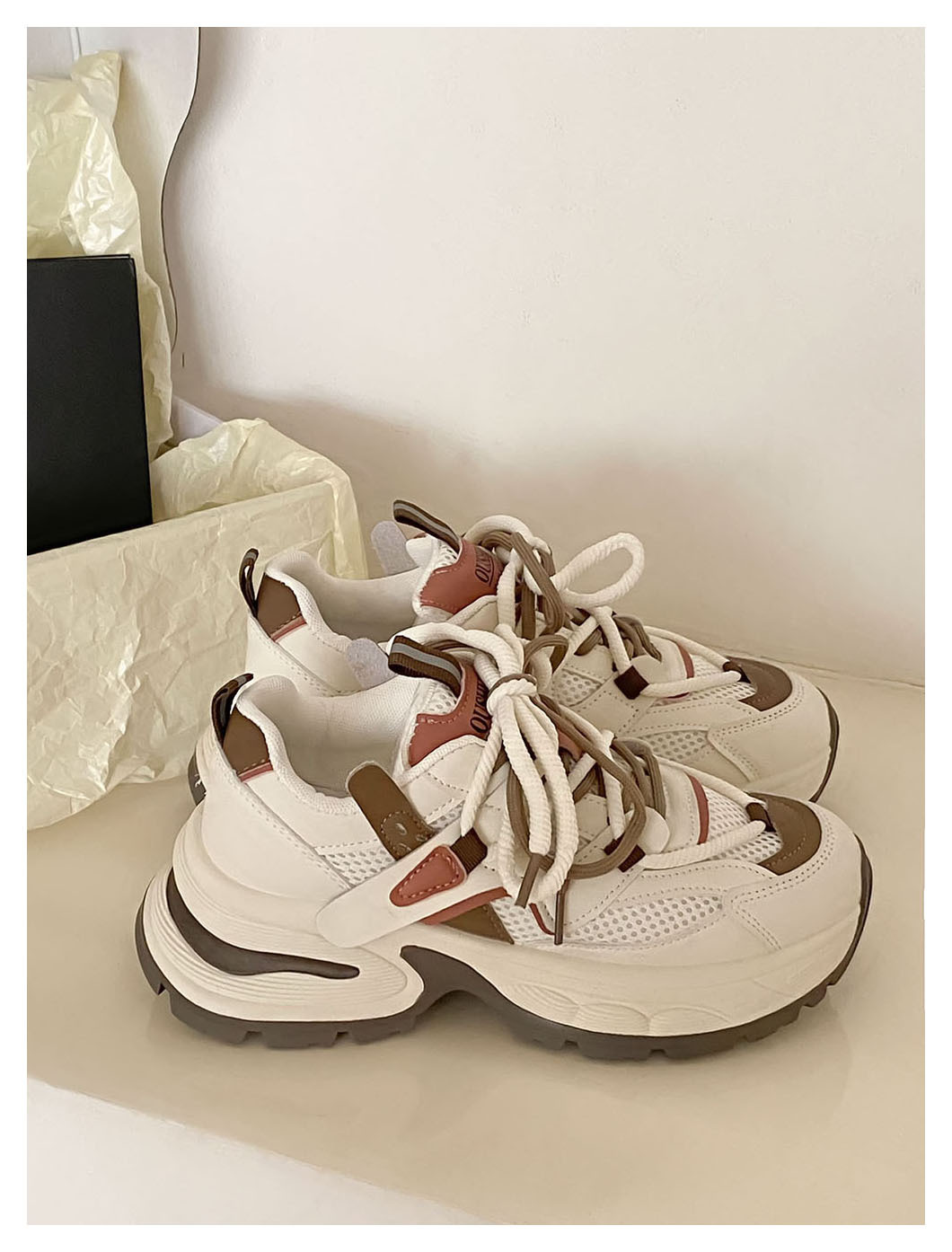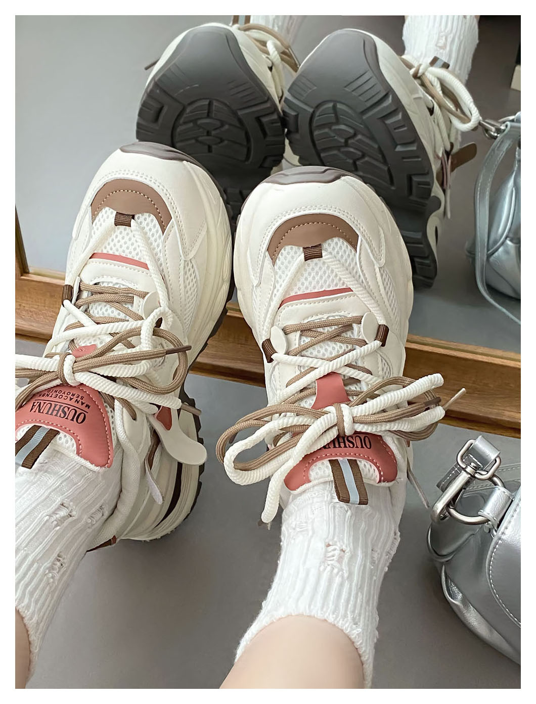 Mixed Colors Women's Shoes 2024 Spring New Mesh Breathable Retro Women Casual Shoes Thick Sole Heels Casual Sports Shoes 24-218