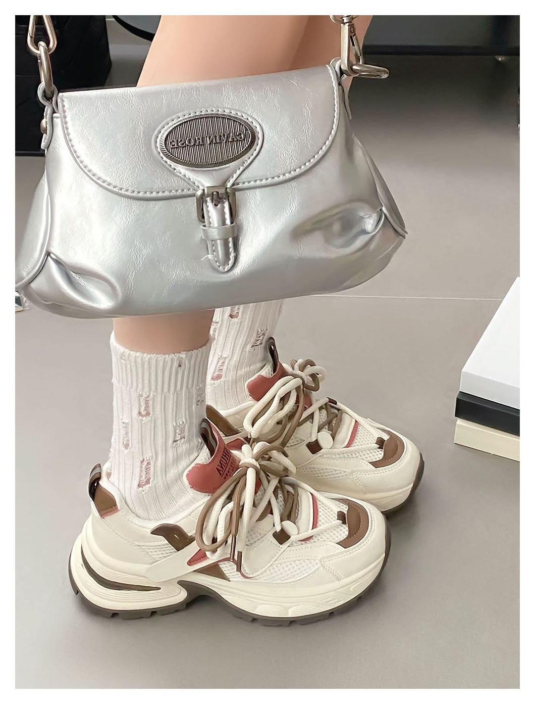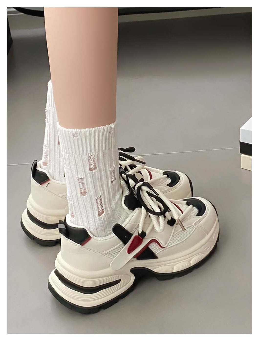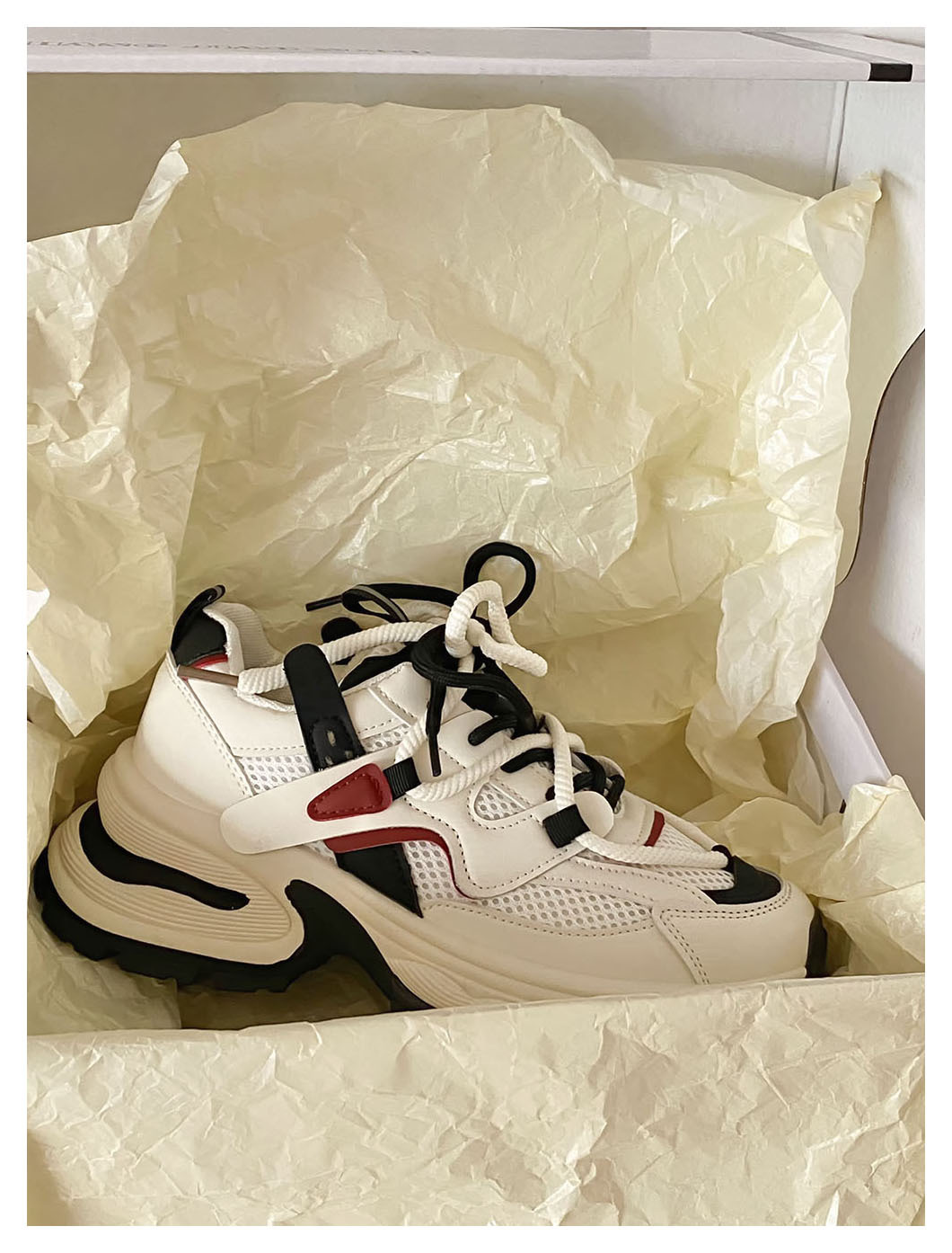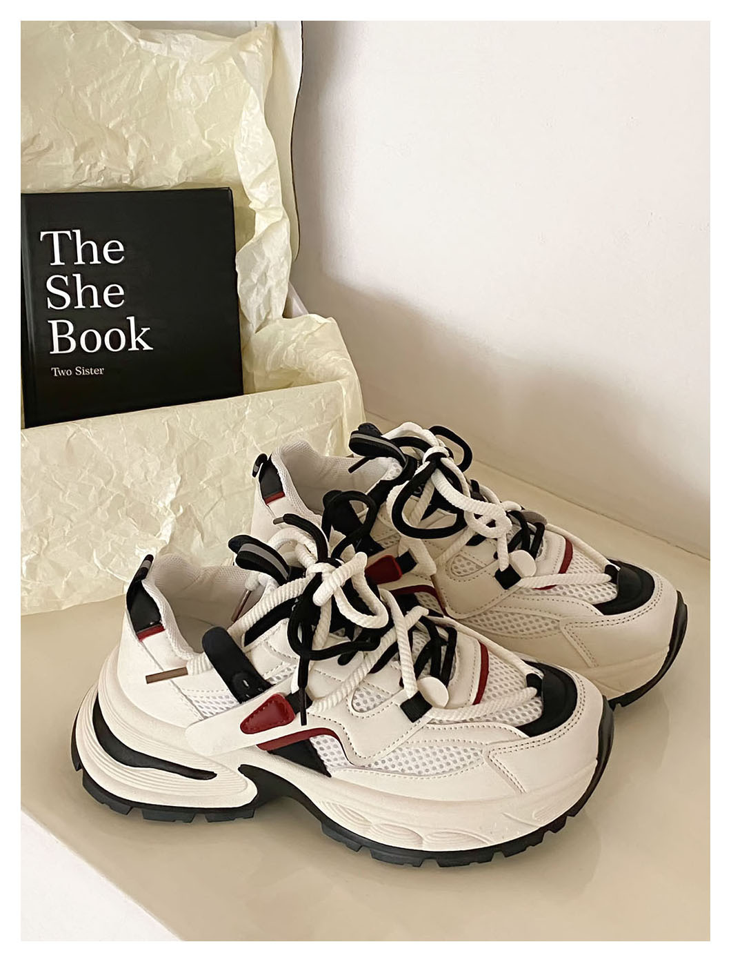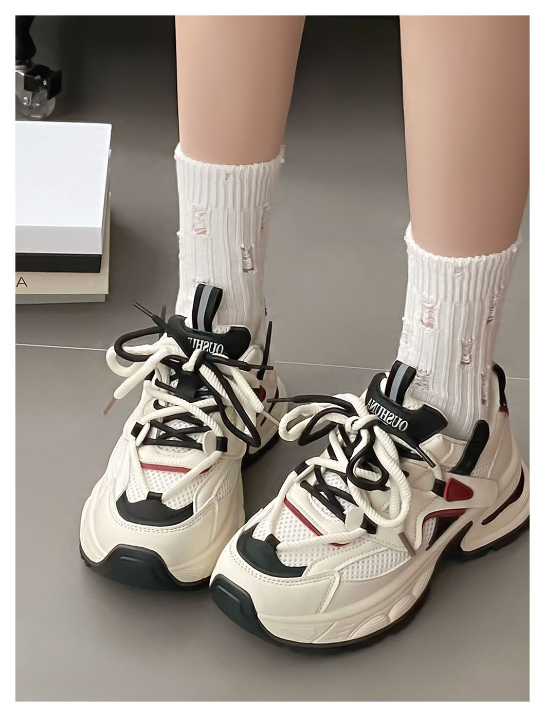 Mixed Colors Women's Shoes 2024 Spring New Mesh Breathable Retro Women Casual Shoes Thick Sole Heels Casual Sports Shoes 24-218