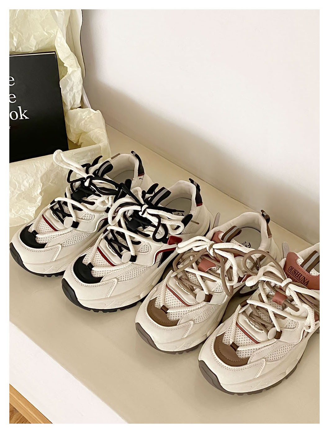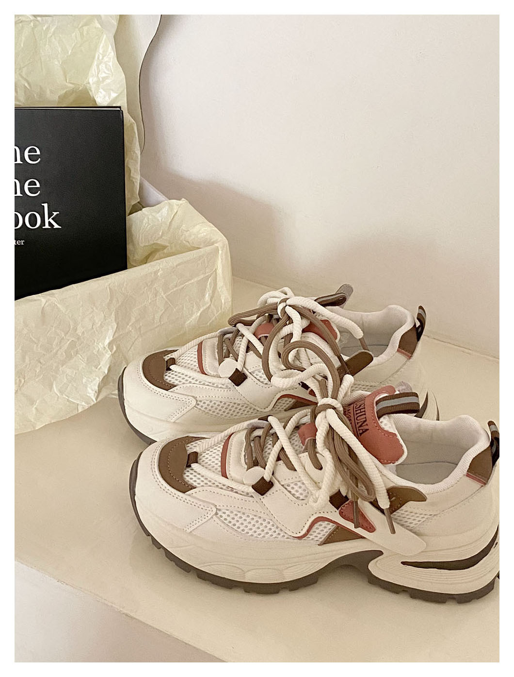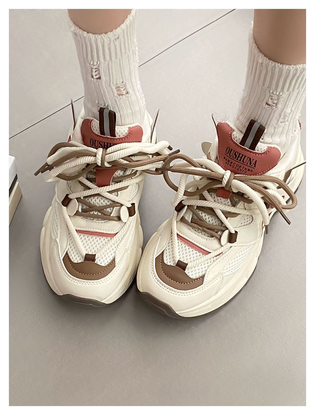 Mixed Colors Women's Shoes 2024 Spring New Mesh Breathable Retro Women Casual Shoes Thick Sole Heels Casual Sports Shoes 24-218