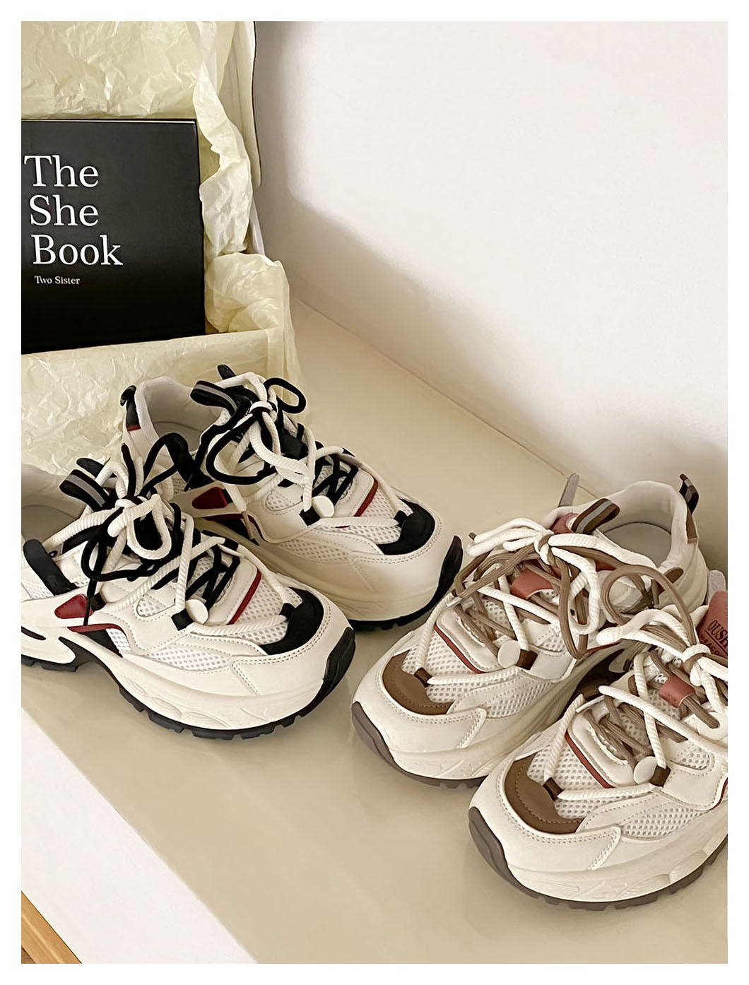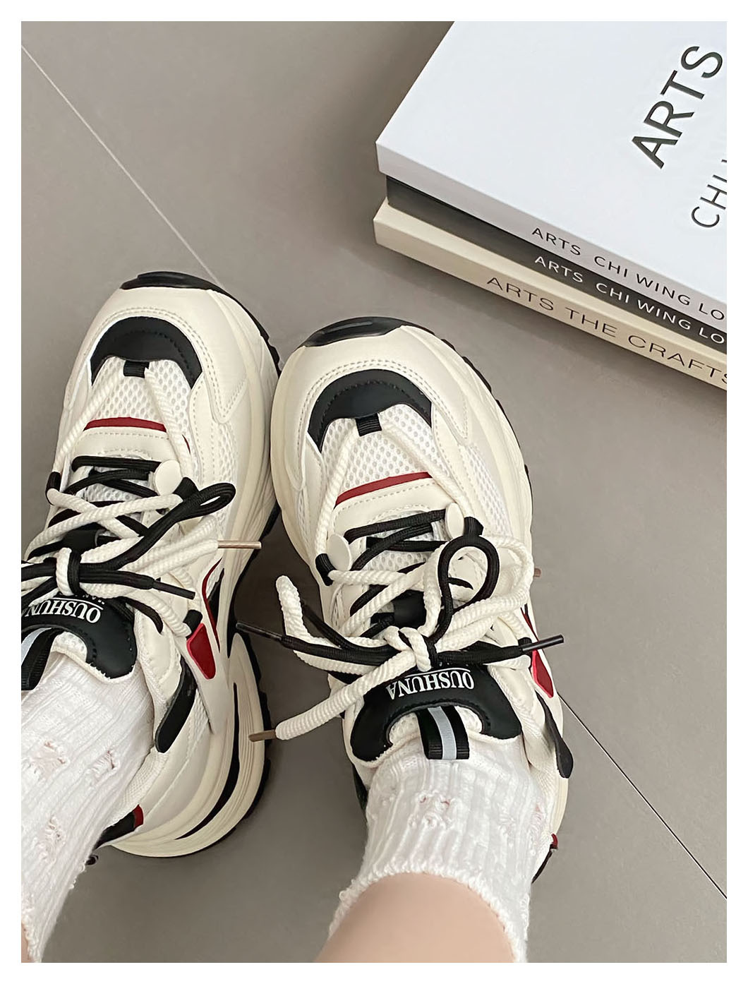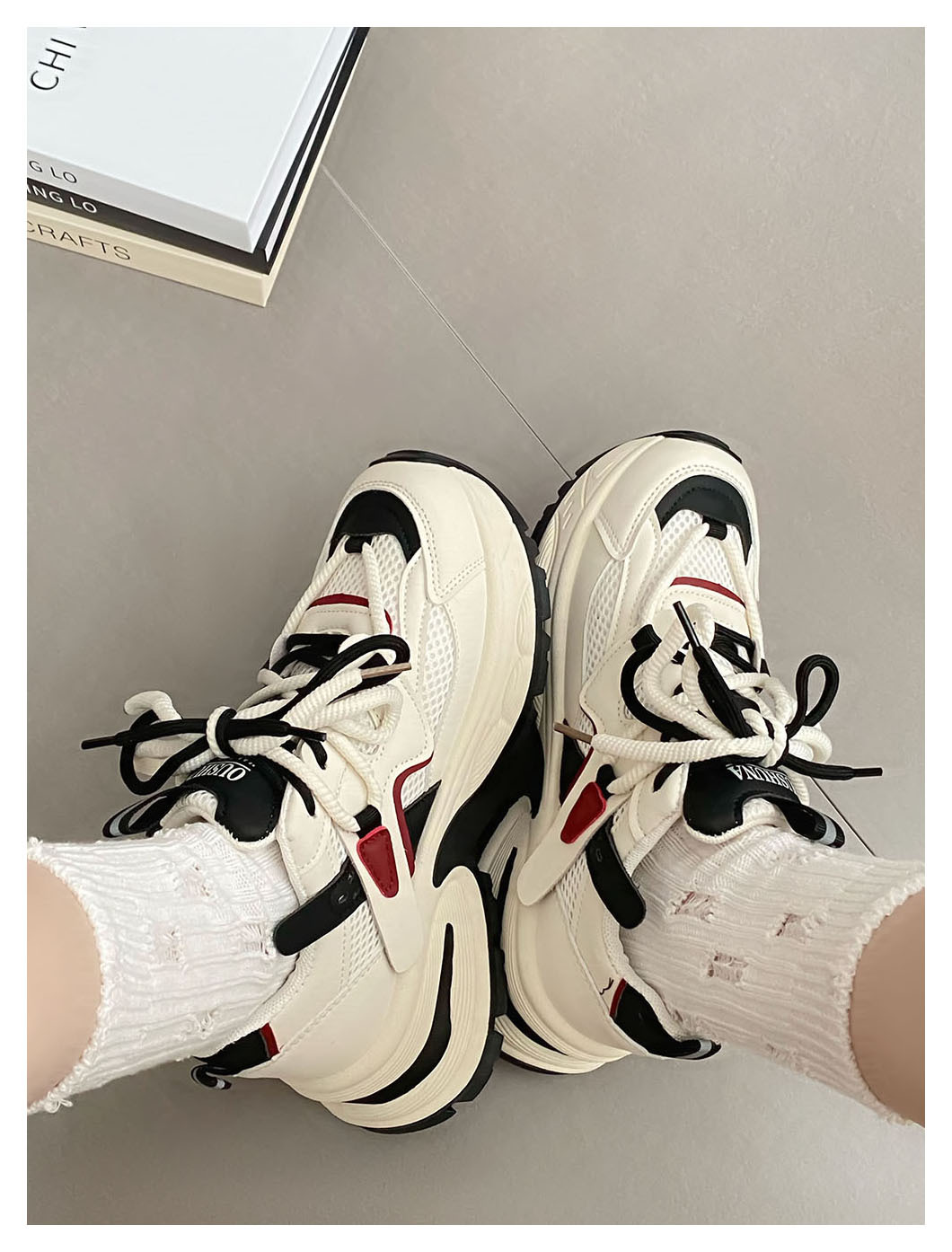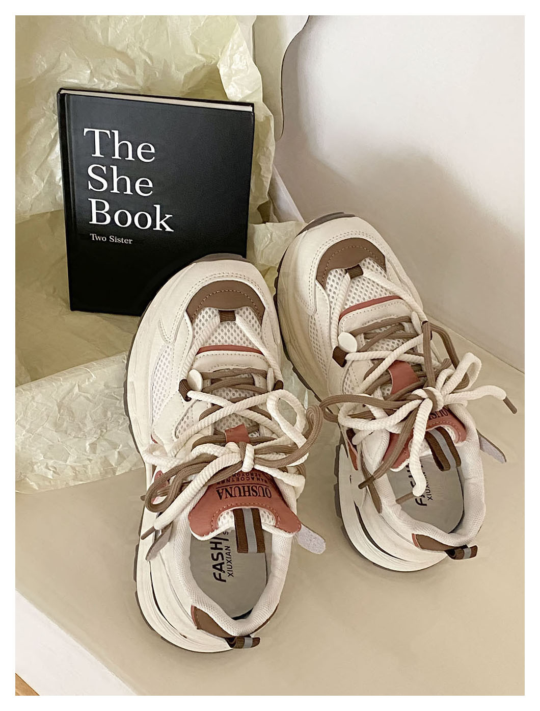 Mixed Colors Women's Shoes 2024 Spring New Mesh Breathable Retro Women Casual Shoes Thick Sole Heels Casual Sports Shoes 24-218
