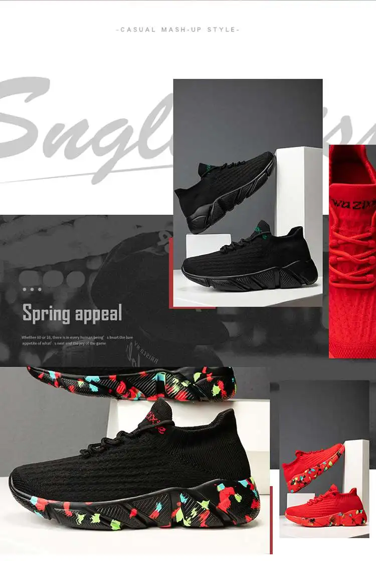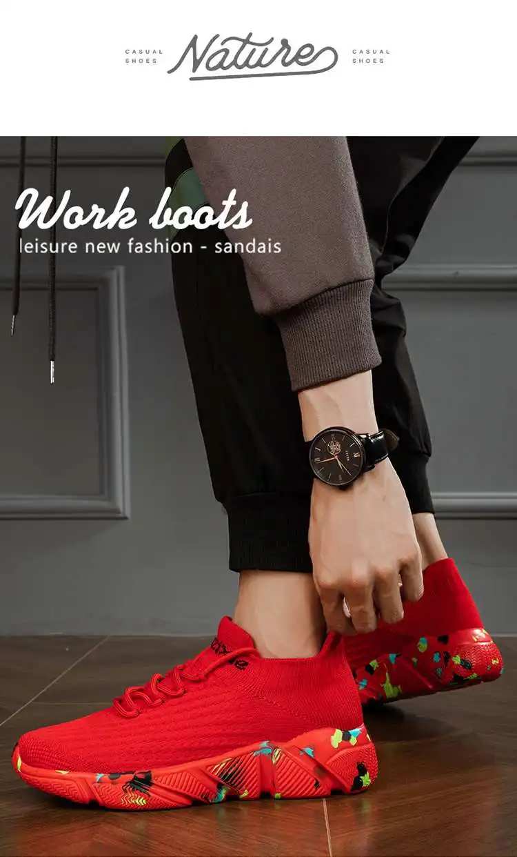 MWY Chinese Red Women's Summer Footwear Men Sports Shoes Casual Sneaker Breathable Lightweight Sock Shoes Zapatillas Size 35-46