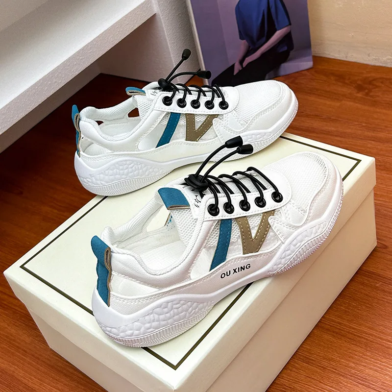 New 2024 Summer Women Flats Fashion Hollow Breathable Casual Sports Shoes Woman Vulcanize Shoes Ladies Non-slip Walking Sneakers