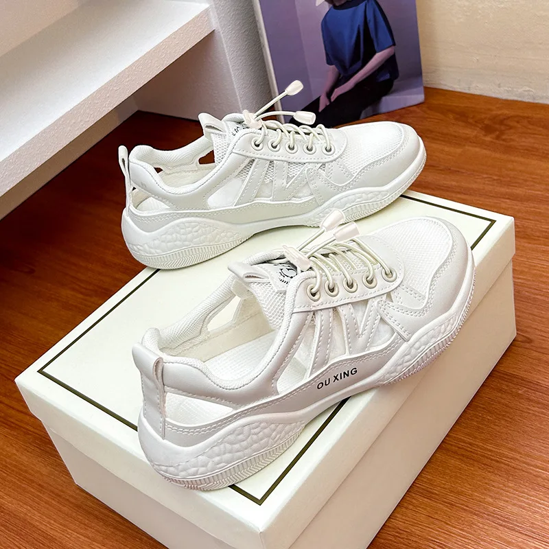 New 2024 Summer Women Flats Fashion Hollow Breathable Casual Sports Shoes Woman Vulcanize Shoes Ladies Non-slip Walking Sneakers
