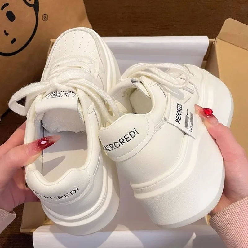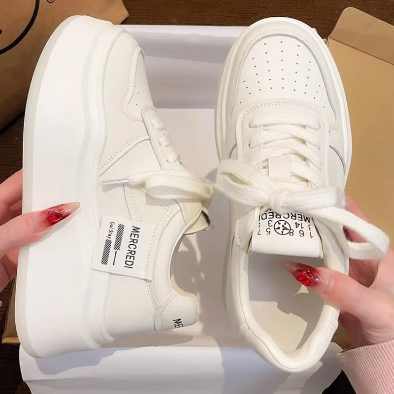 New Fashion Leather Women's Black White Casual Woman Vulcanize Sneakers Breathable Sport Walking Running Platform Flats Shoes