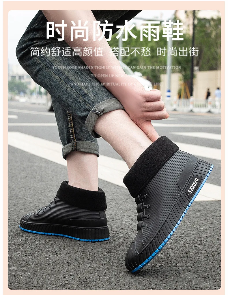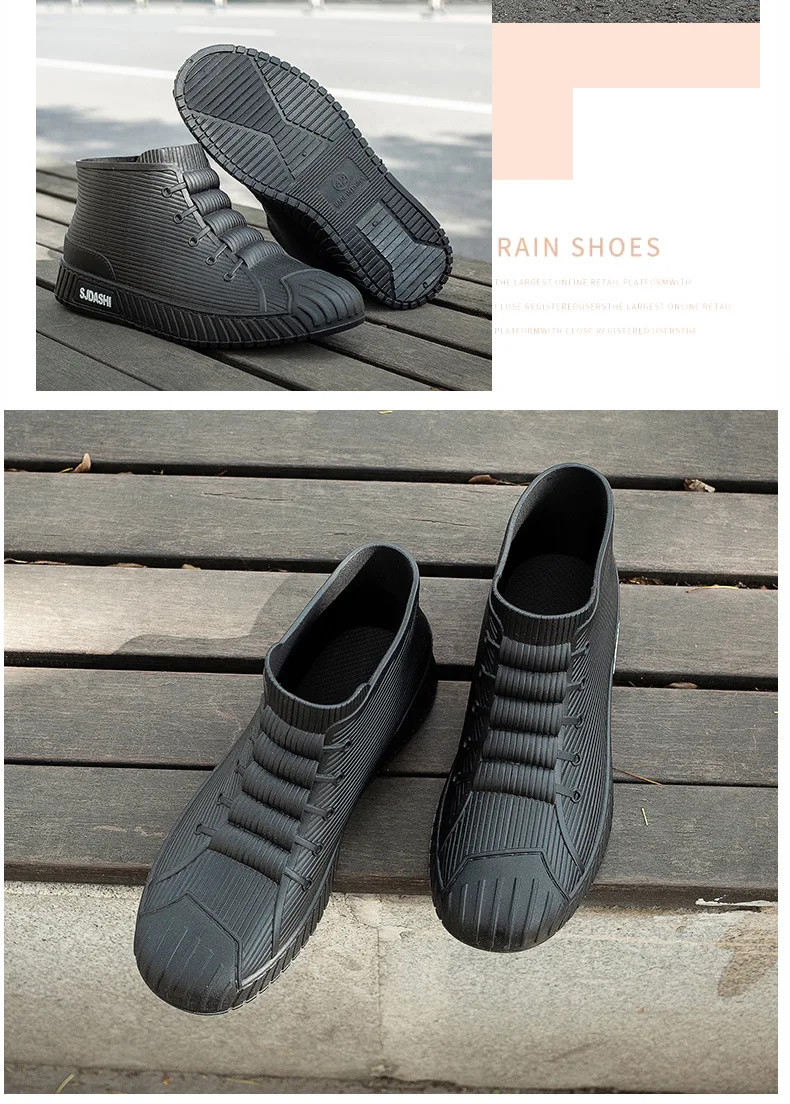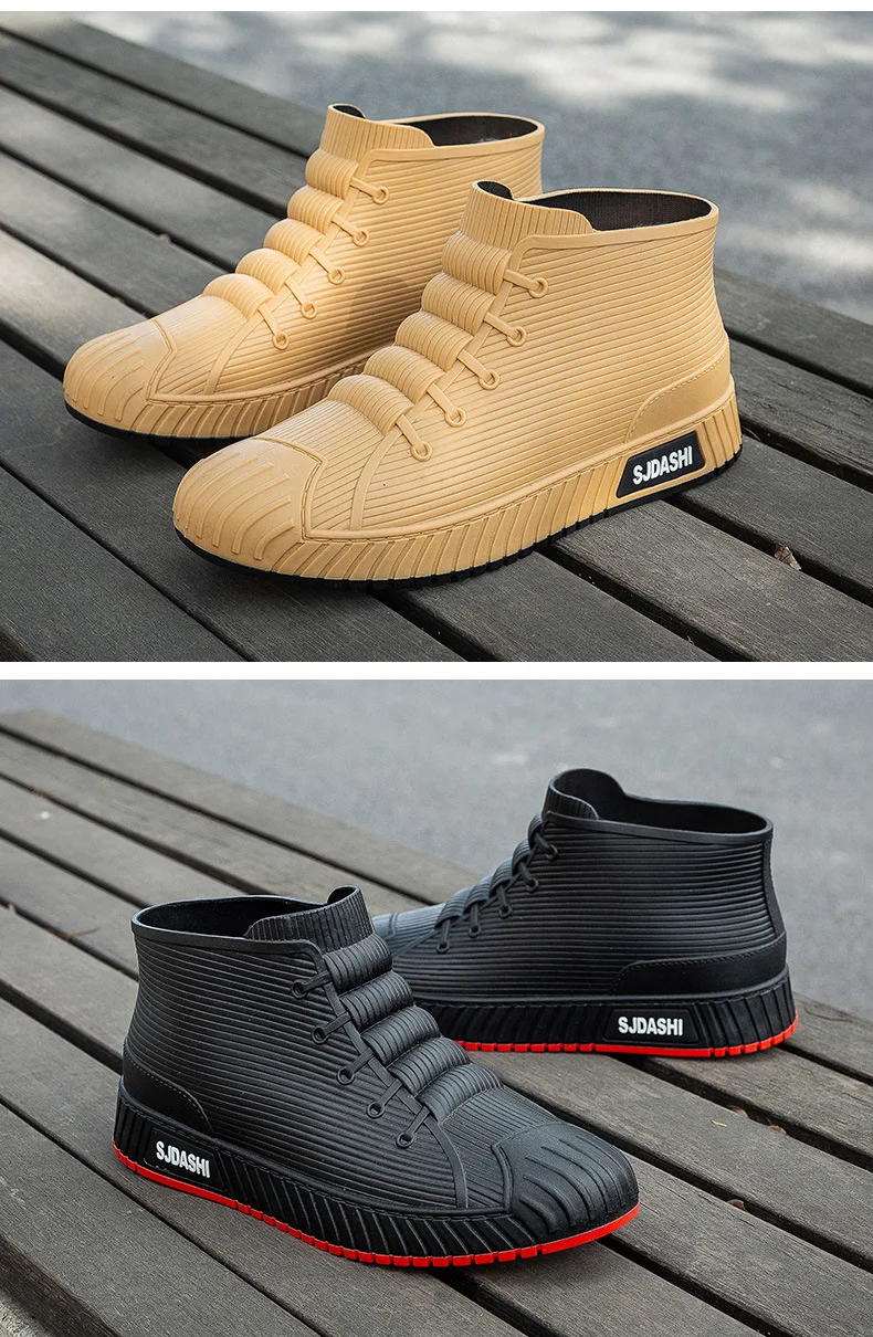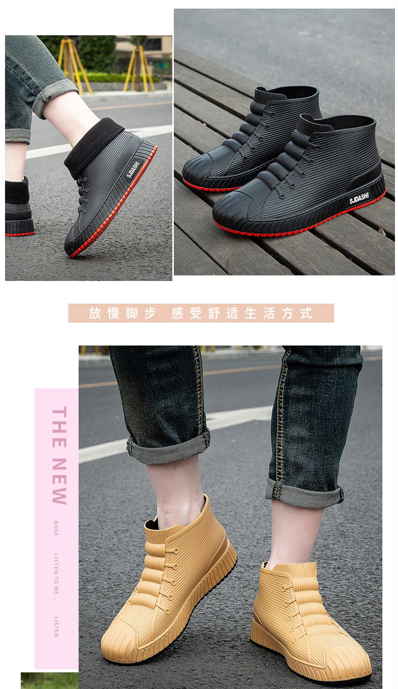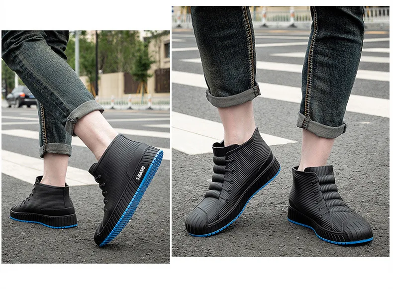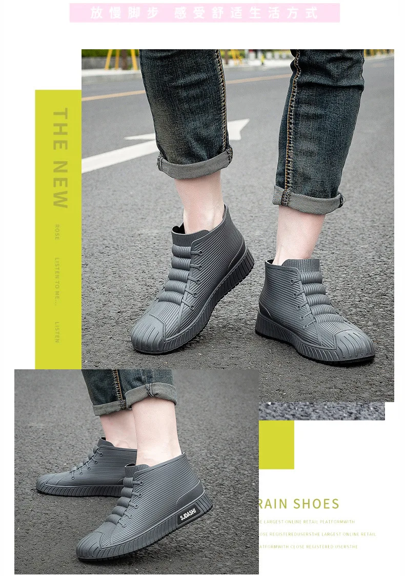 New Fashion Men's Rain Boots Rubber Gumboots Slip on Mid-calf Waterproof Working Boots Comfort Multicolor Non-slip Fishing Shoes