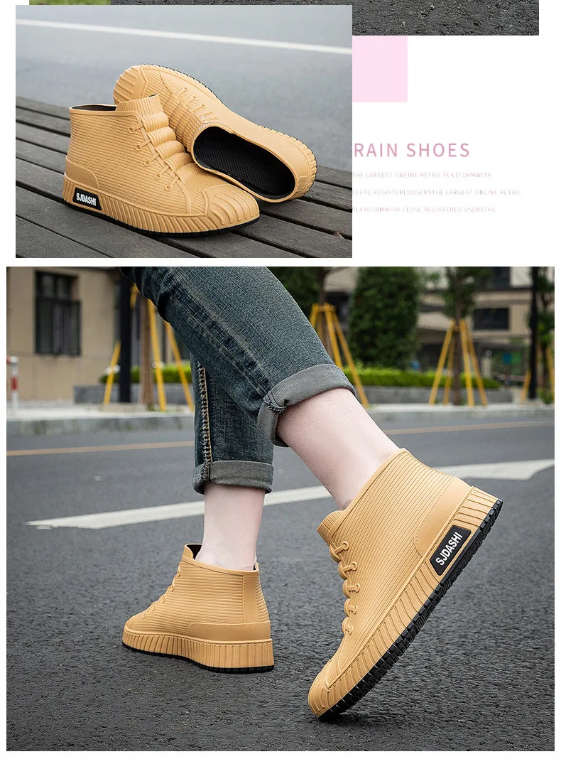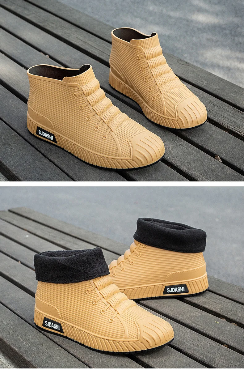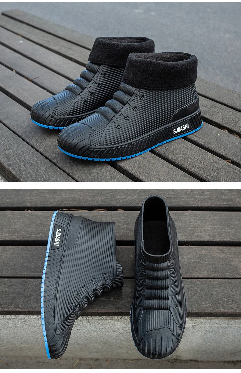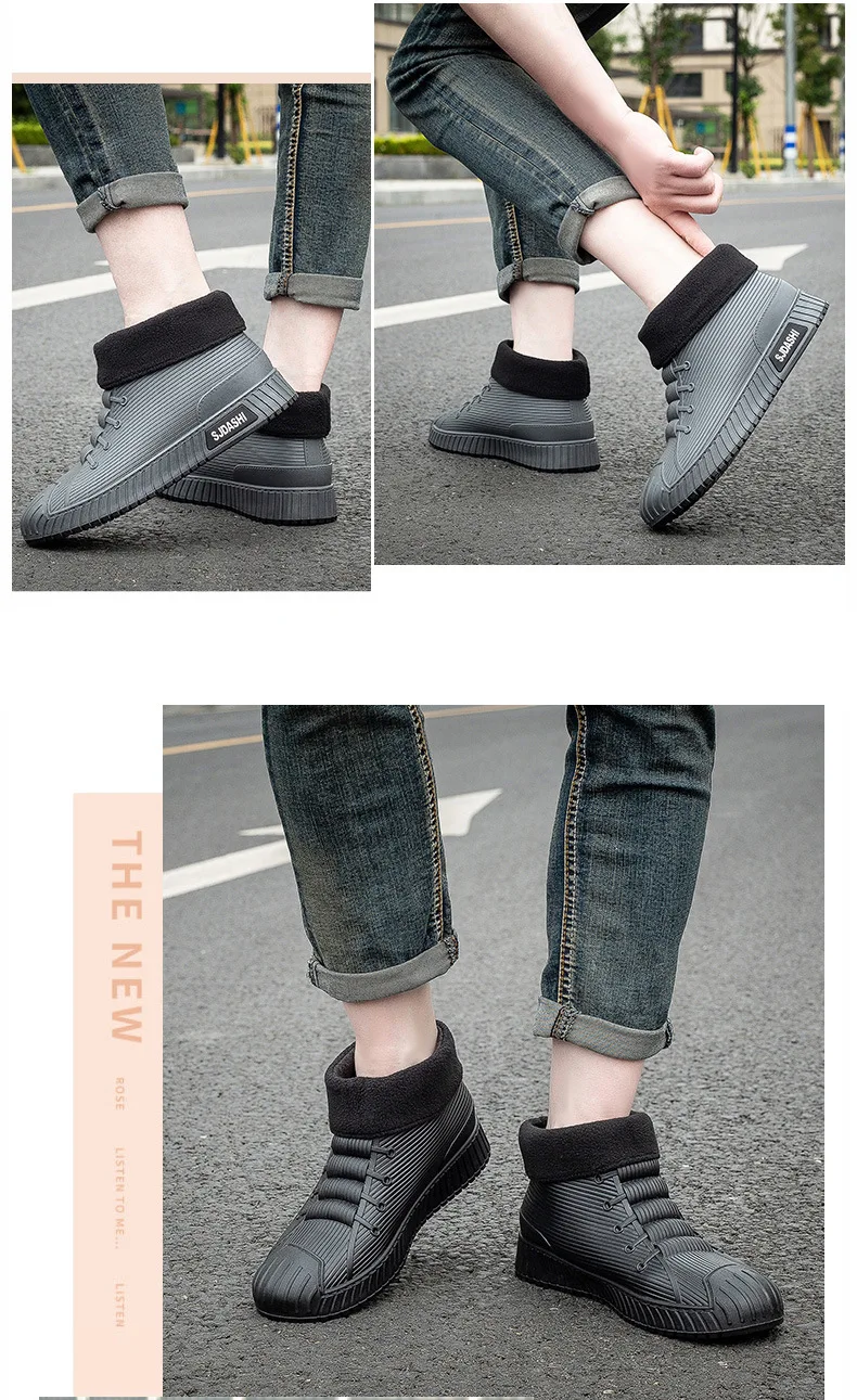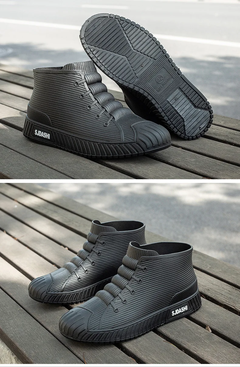 New Fashion Men's Rain Boots Rubber Gumboots Slip on Mid-calf Waterproof Working Boots Comfort Multicolor Non-slip Fishing Shoes